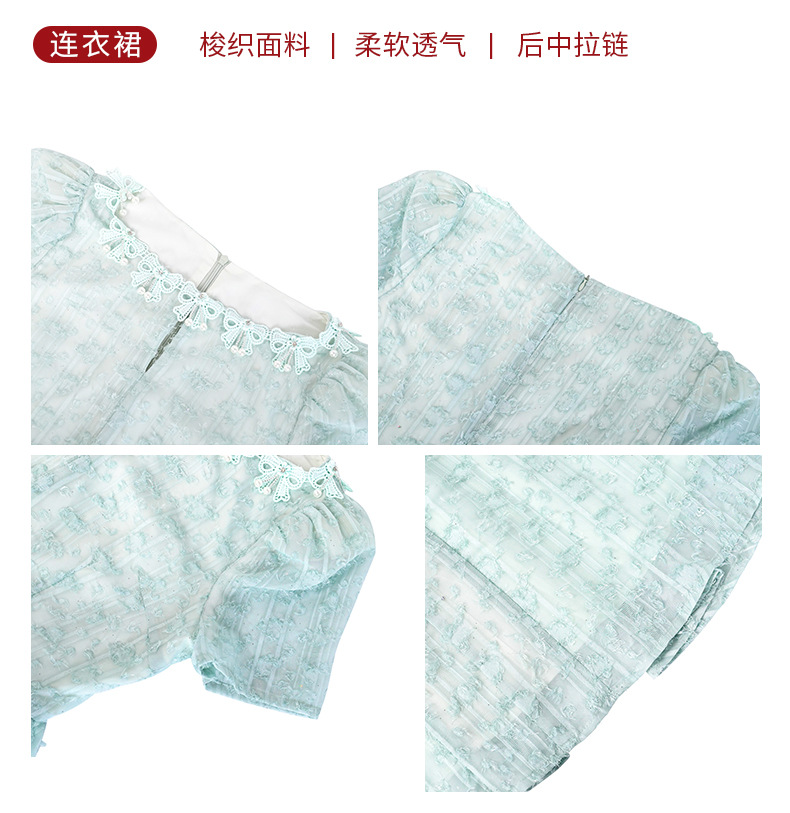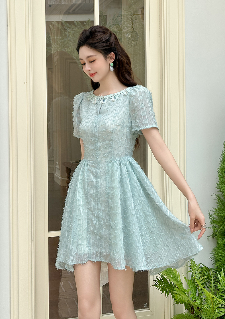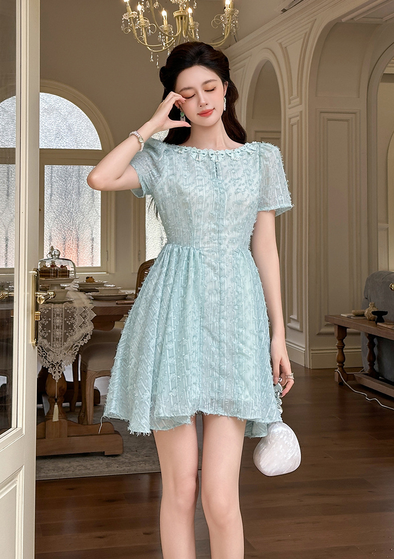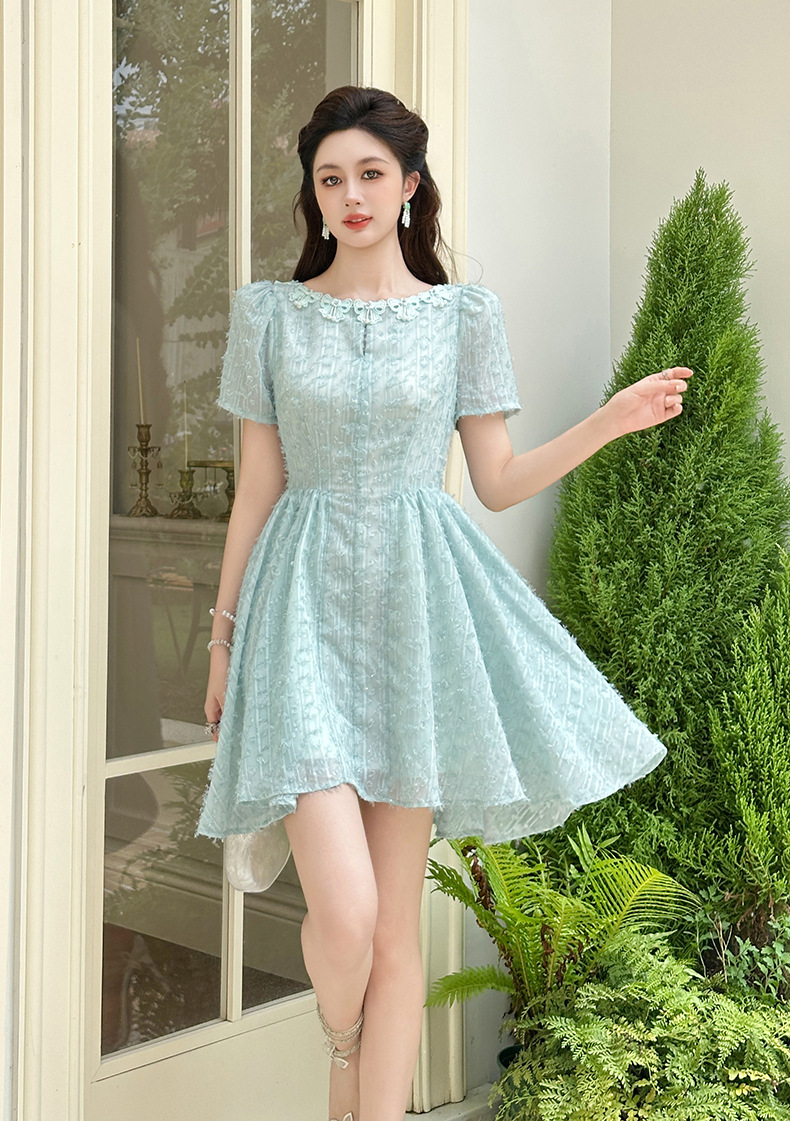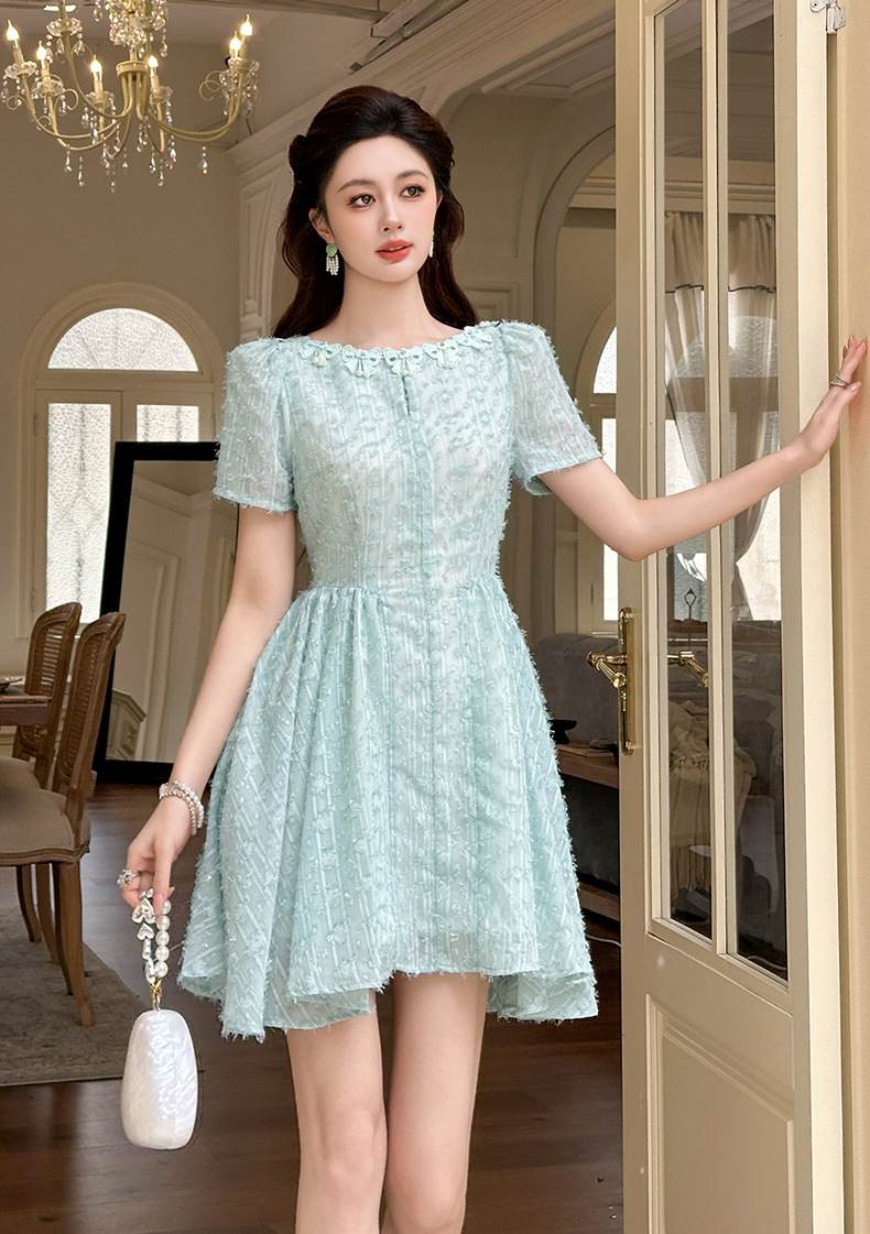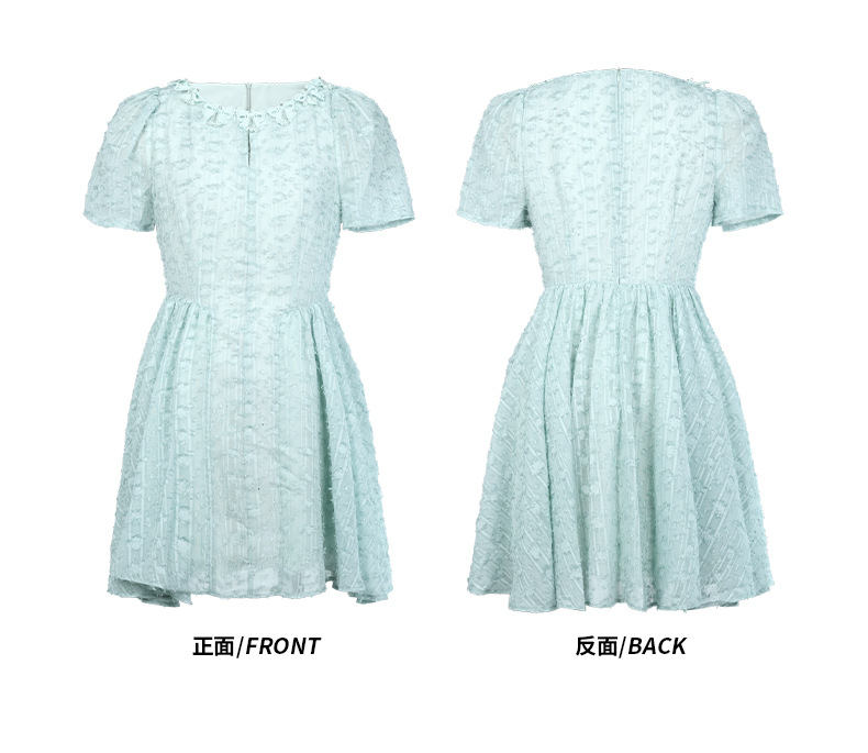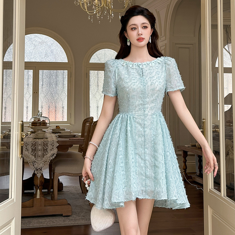 C-4325# 法式圆领收腰不规则连衣裙女夏季清新收腰蓬蓬裙小个子短裙21650