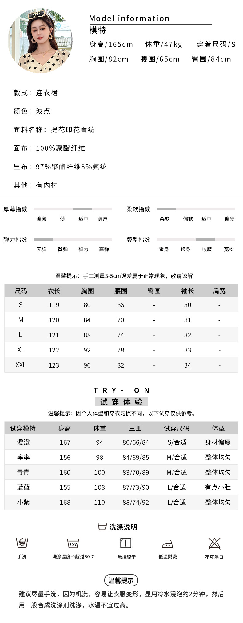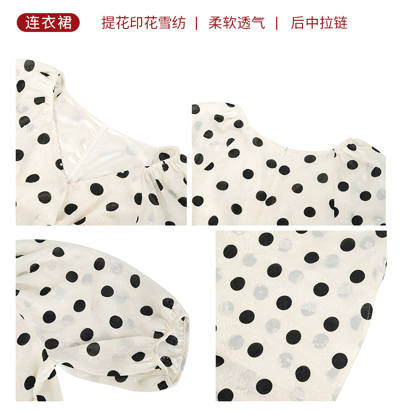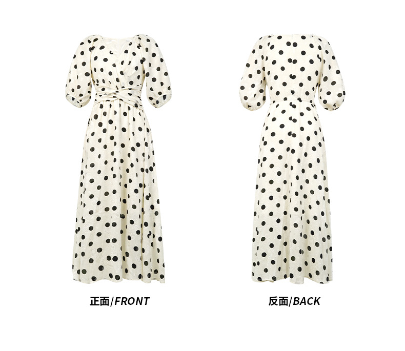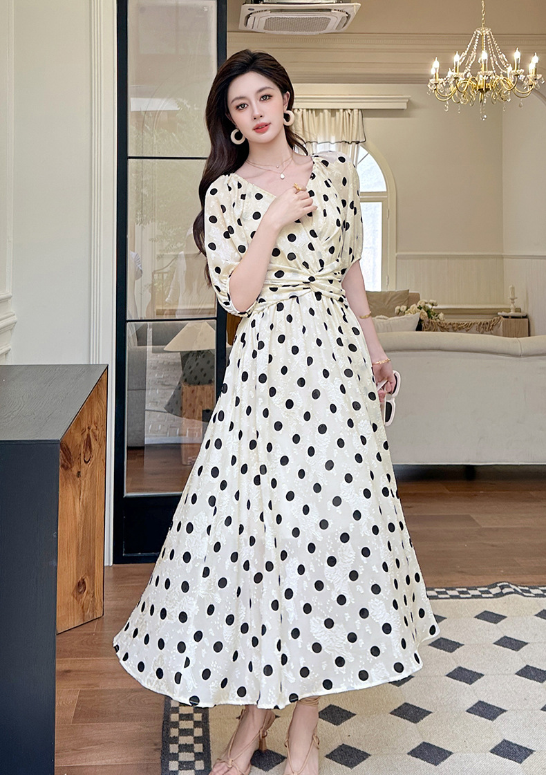 C-4327# 2025夏季新款女装法式V领收腰显高五分袖波点连衣裙茶歇长裙45237
