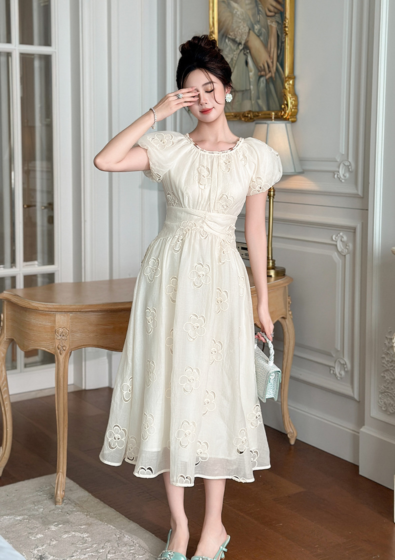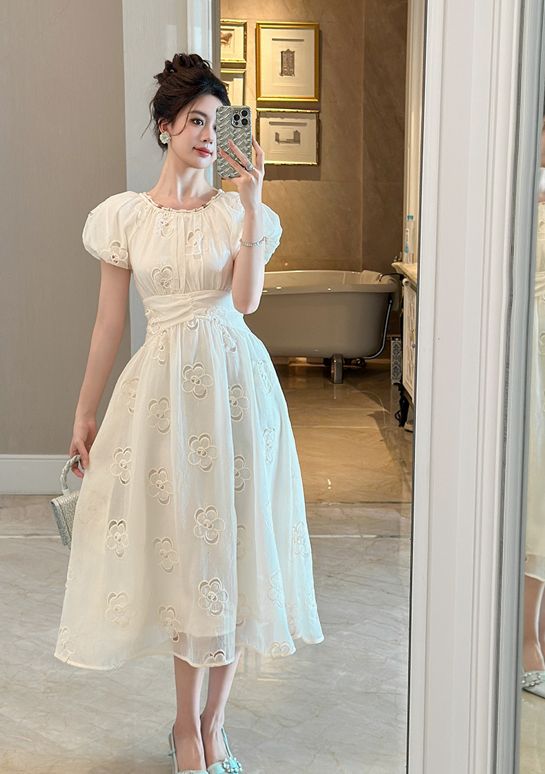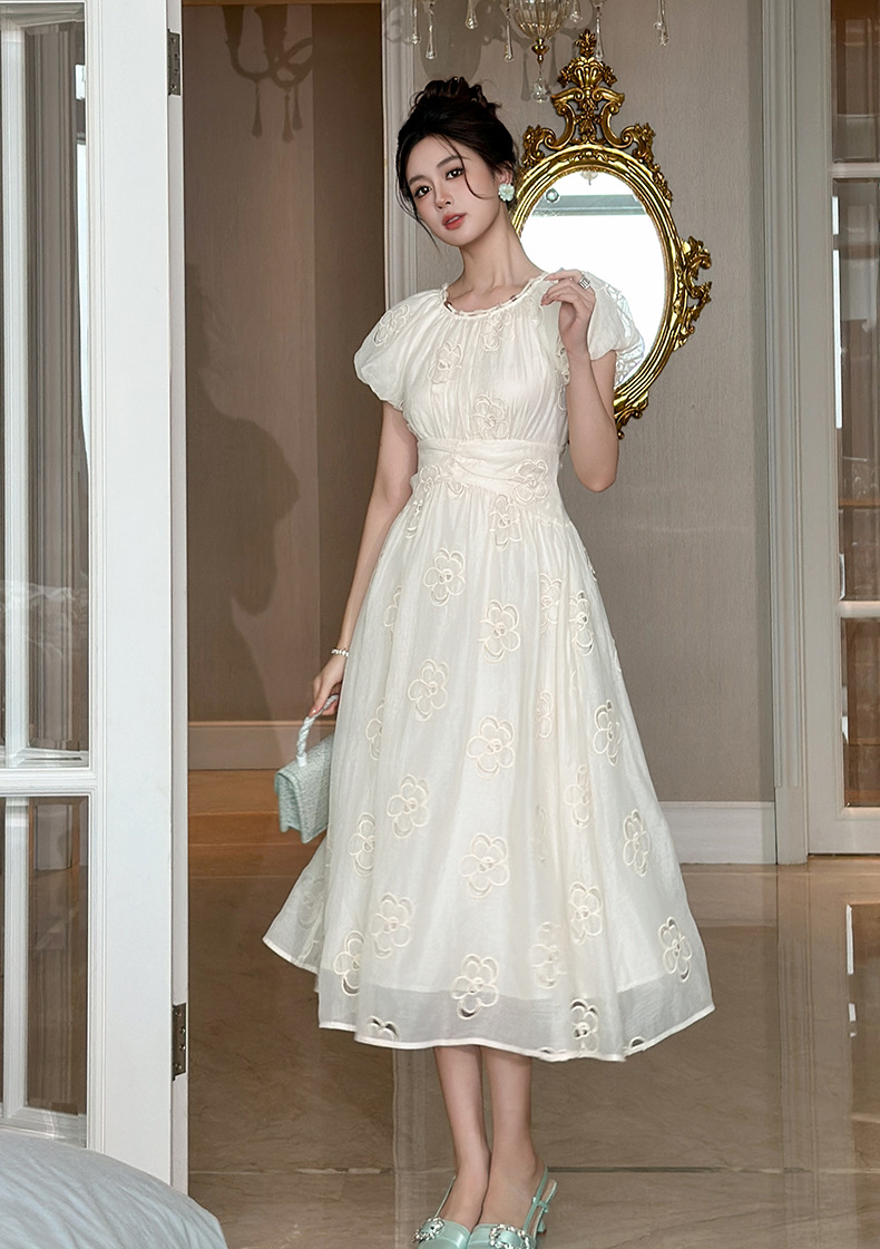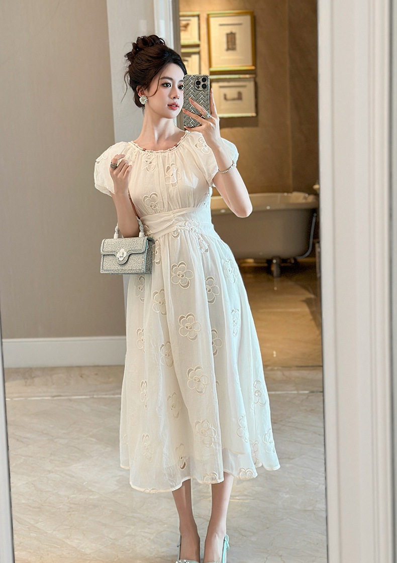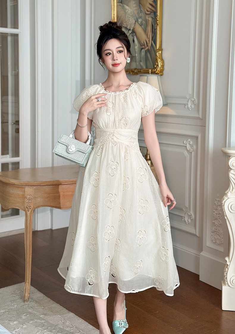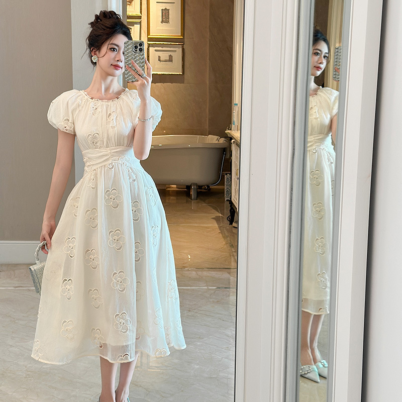 C-4334# 在逃公主裙法式甜美夏季短袖连衣裙女度假风显瘦收腰长裙45214