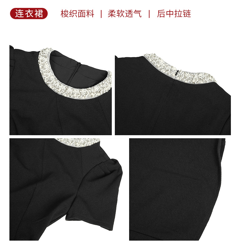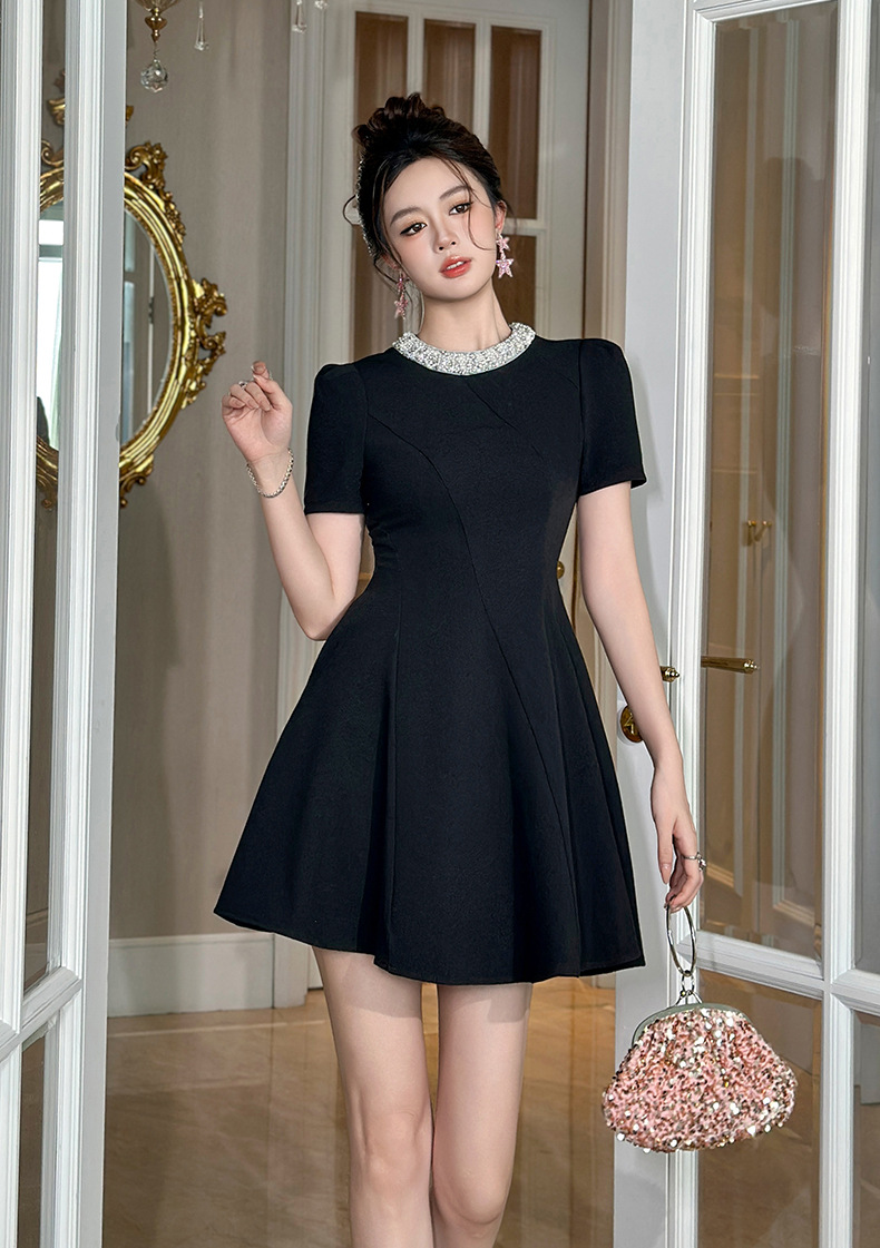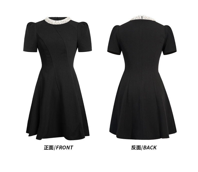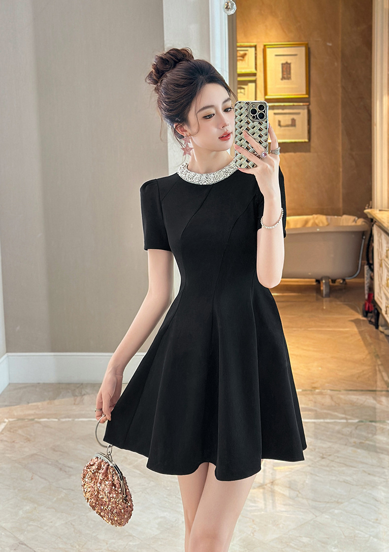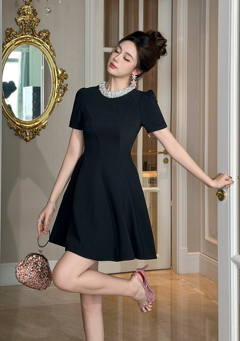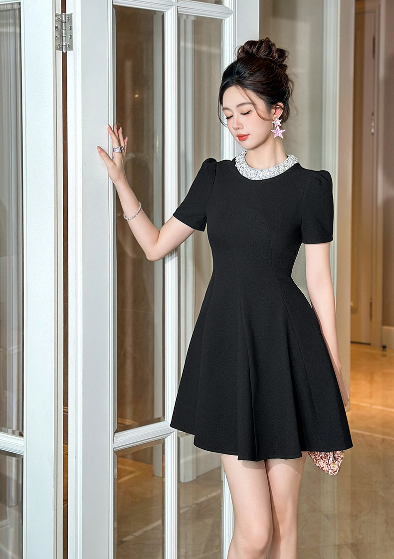 C-4354# 千金风生日礼服裙2025夏季新款女装法式镶钻圆领收腰连衣裙9095