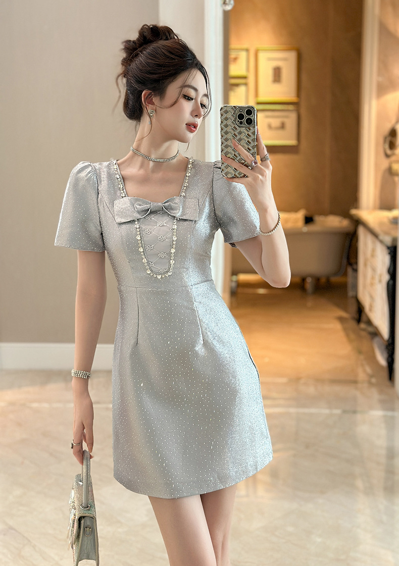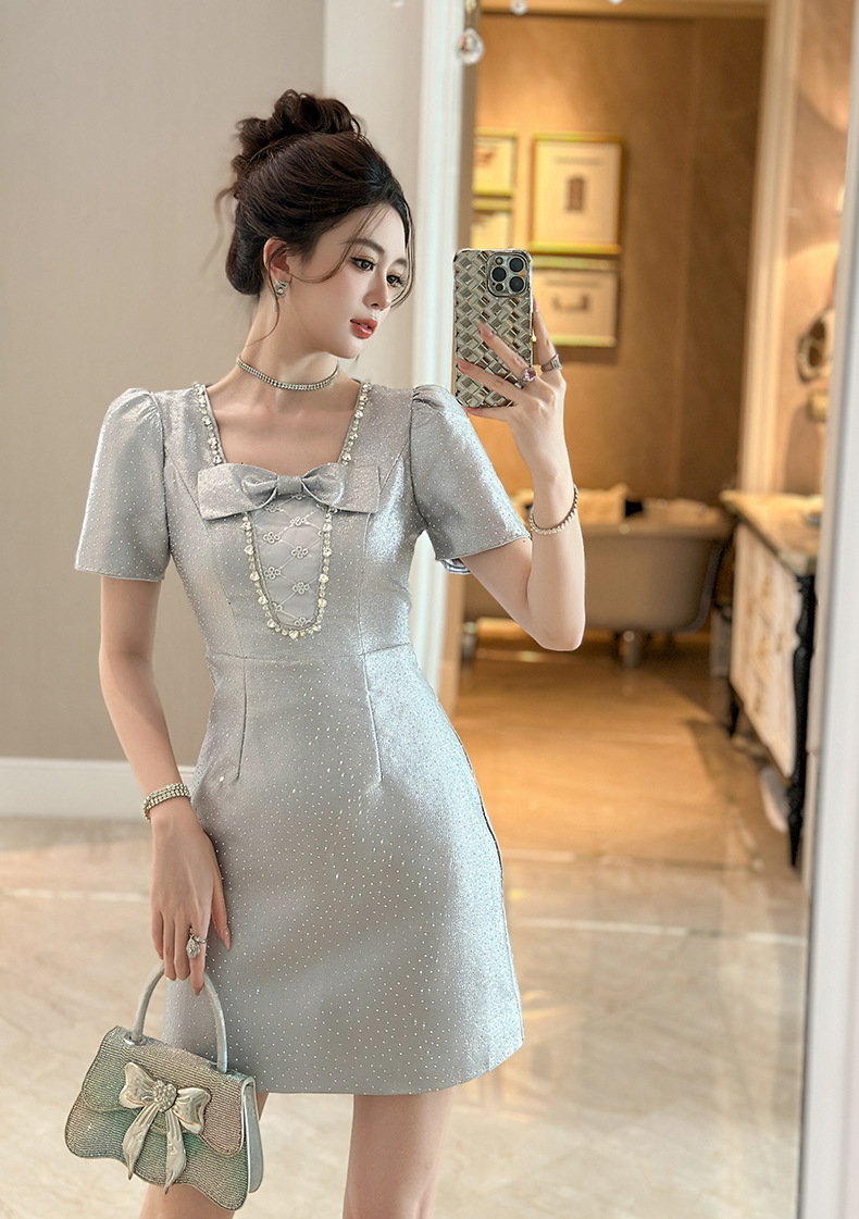 C-4355# 聚会礼服裙2025夏季新款女装设计感减龄蝴蝶结收腰连衣裙65312