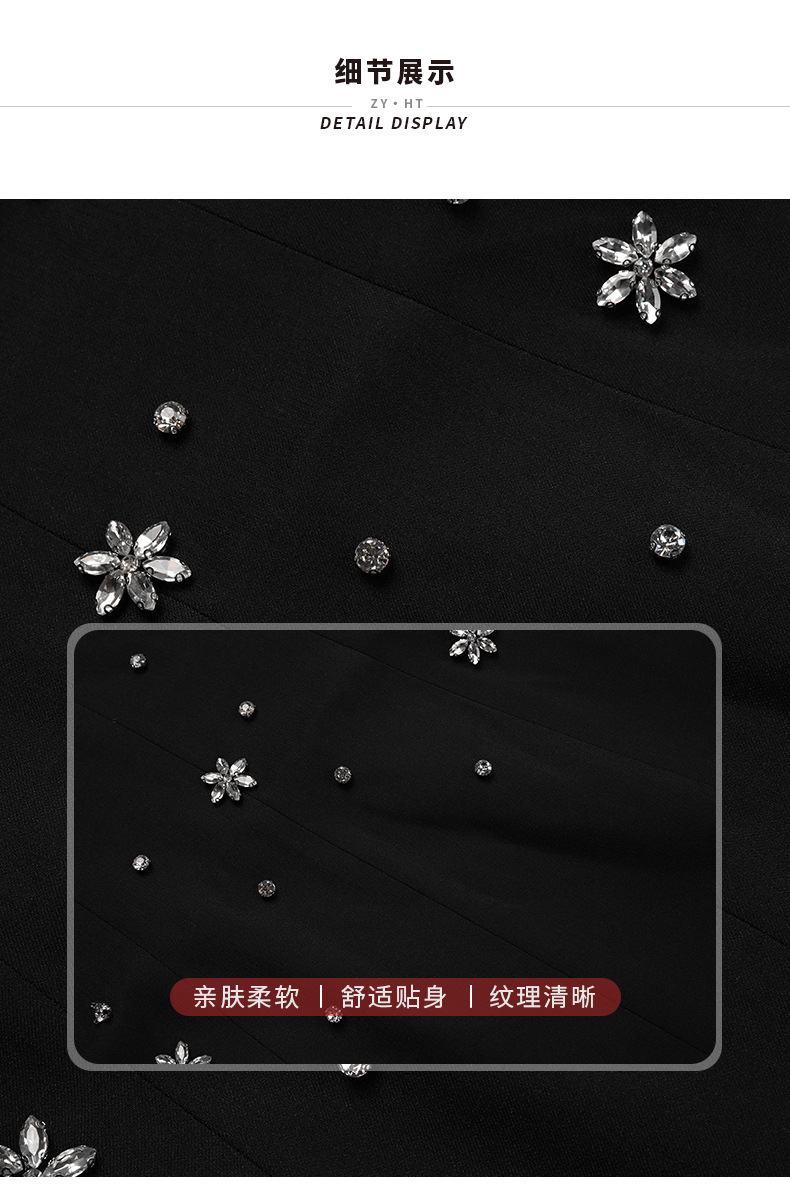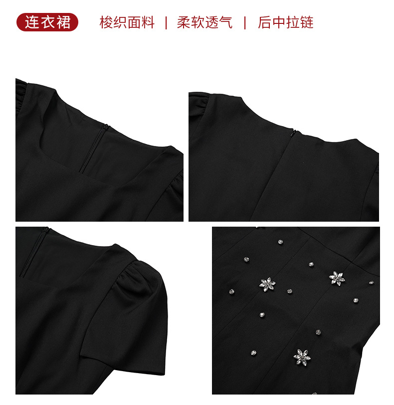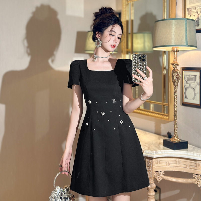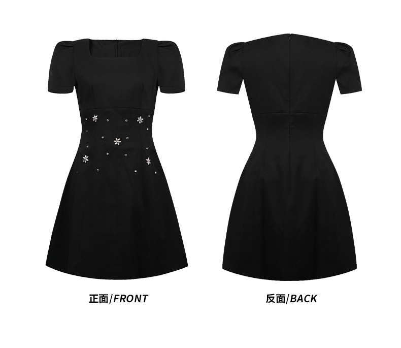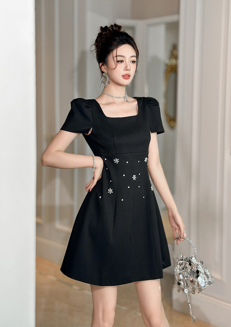 C-4361# 2025夏季新款女装重工设计感镶钻收腰a字连衣裙修身显瘦短裙15436