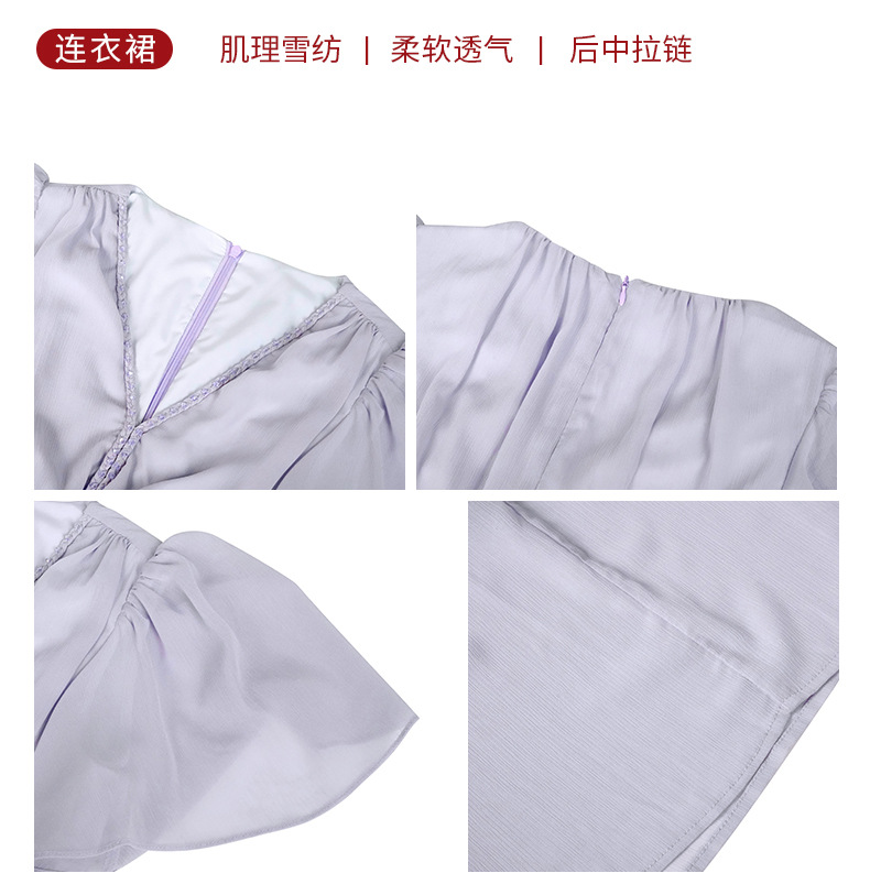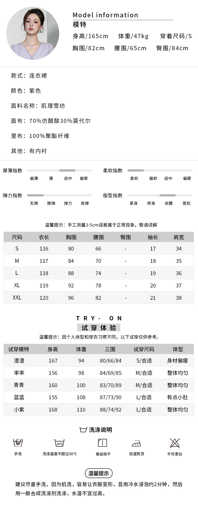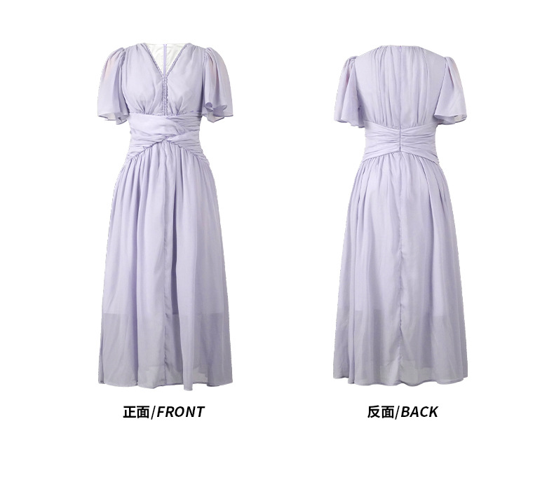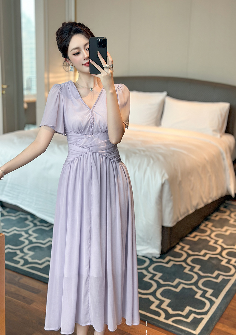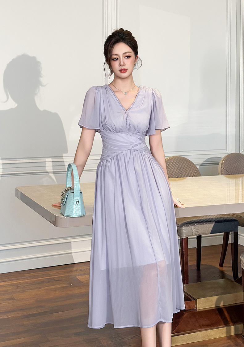 C-4388# 2025夏季新款女装法式V领收腰飘逸紫色连衣裙别致收腰长裙45246