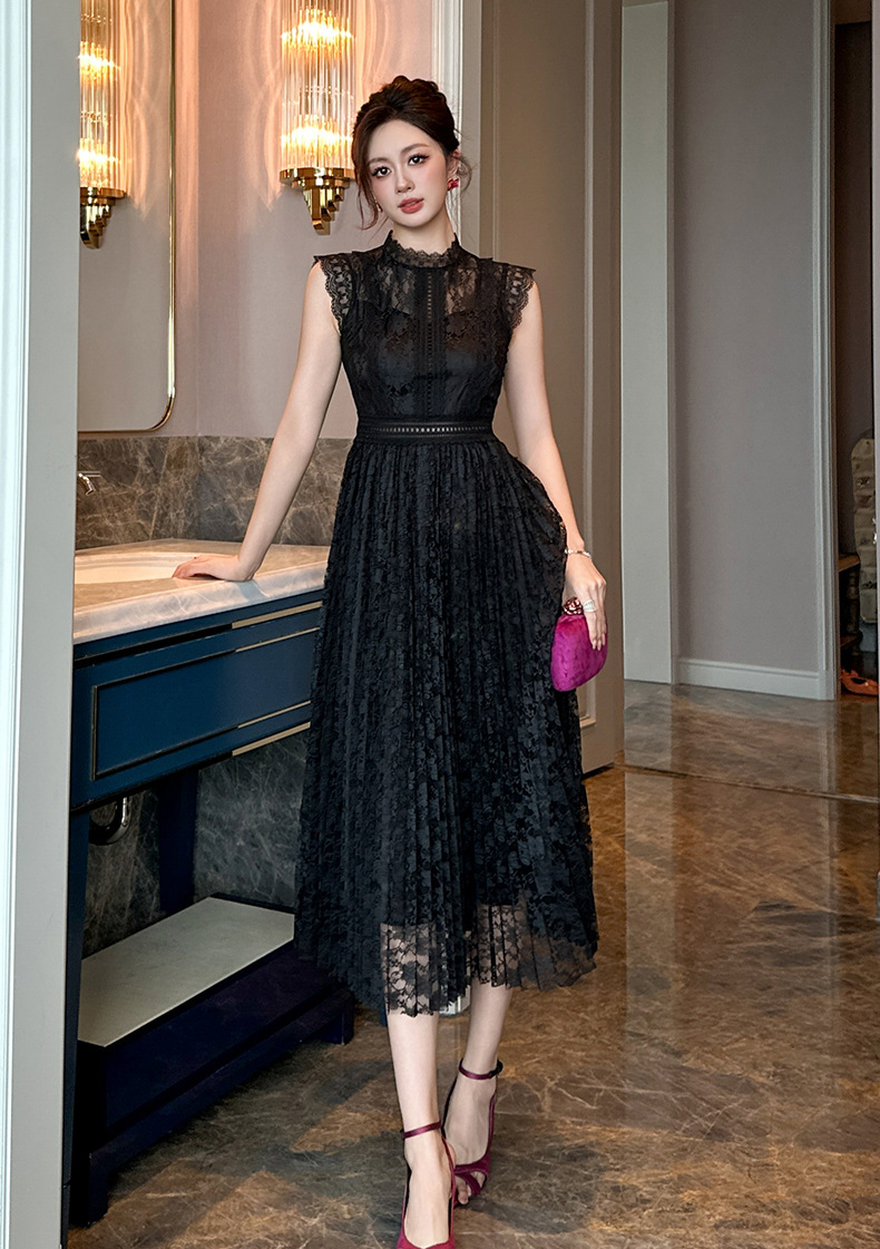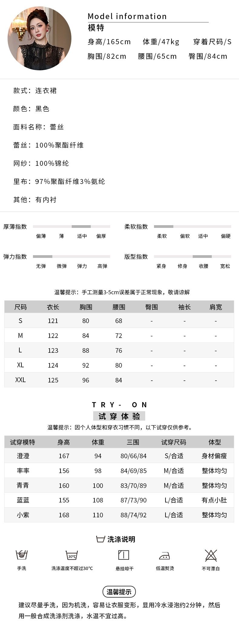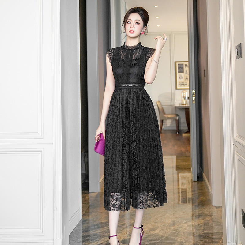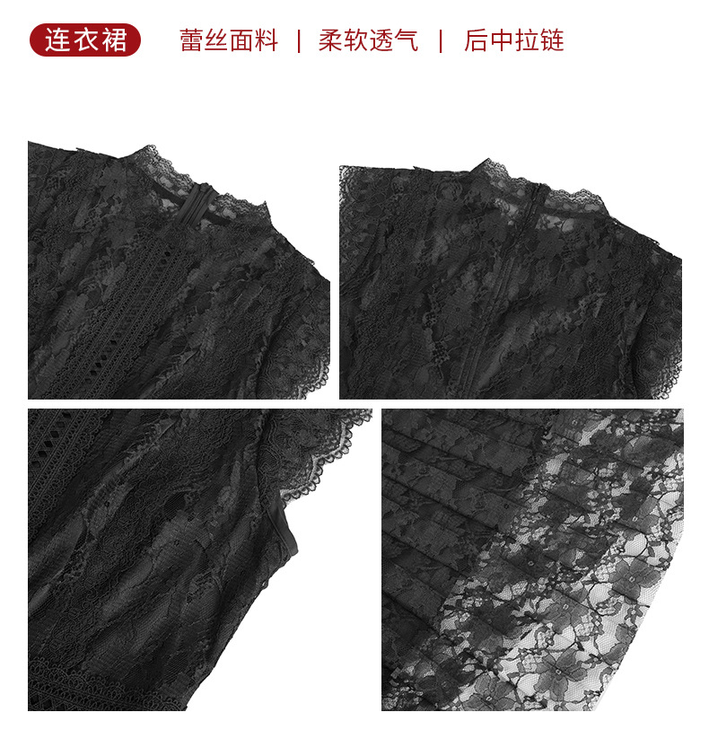 C-4392# 蕾丝刺绣连衣裙女2025年夏季新款法式气质黑色性感长裙夏21850