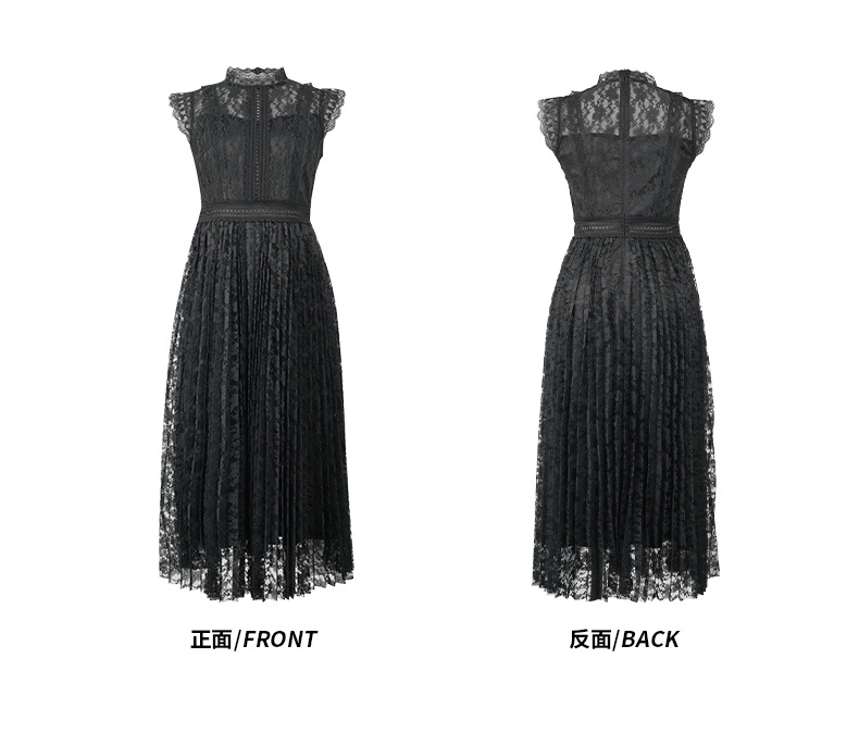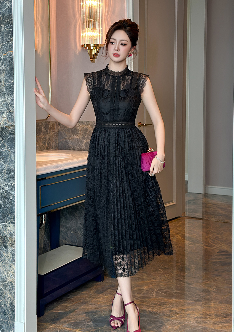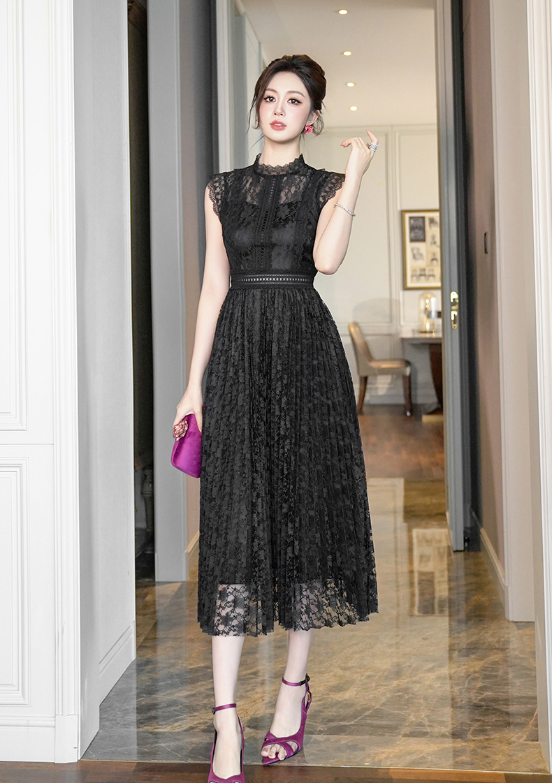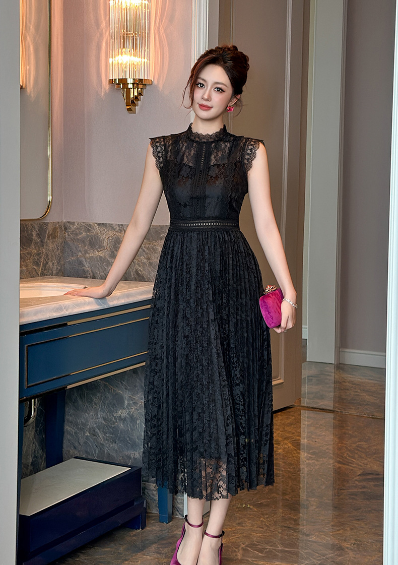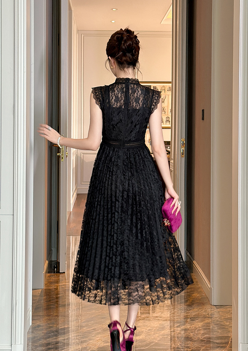 C-4392# 蕾丝刺绣连衣裙女2025年夏季新款法式气质黑色性感长裙夏21850