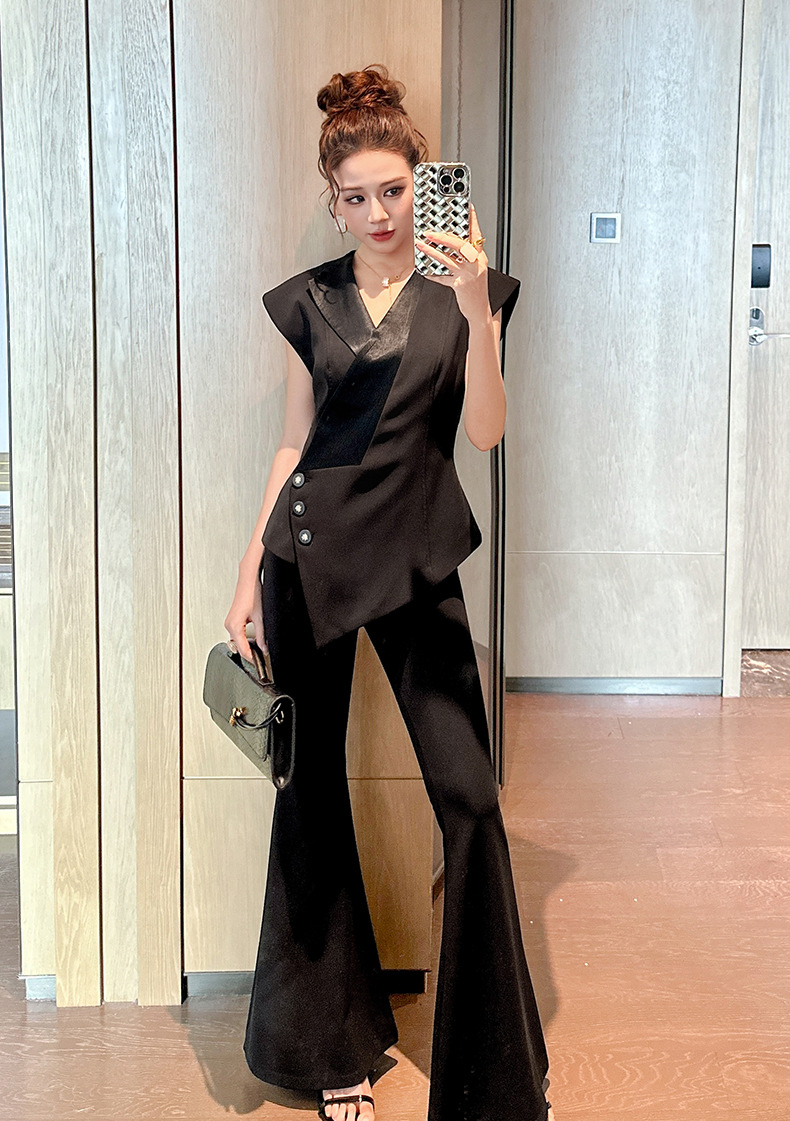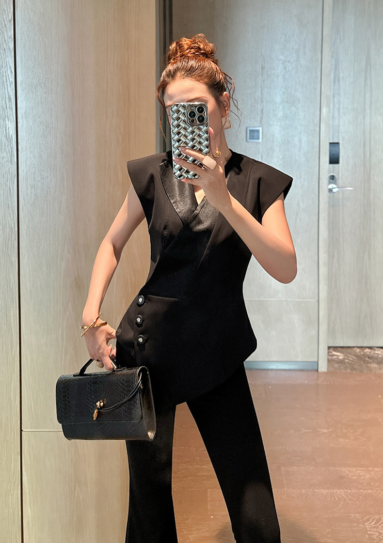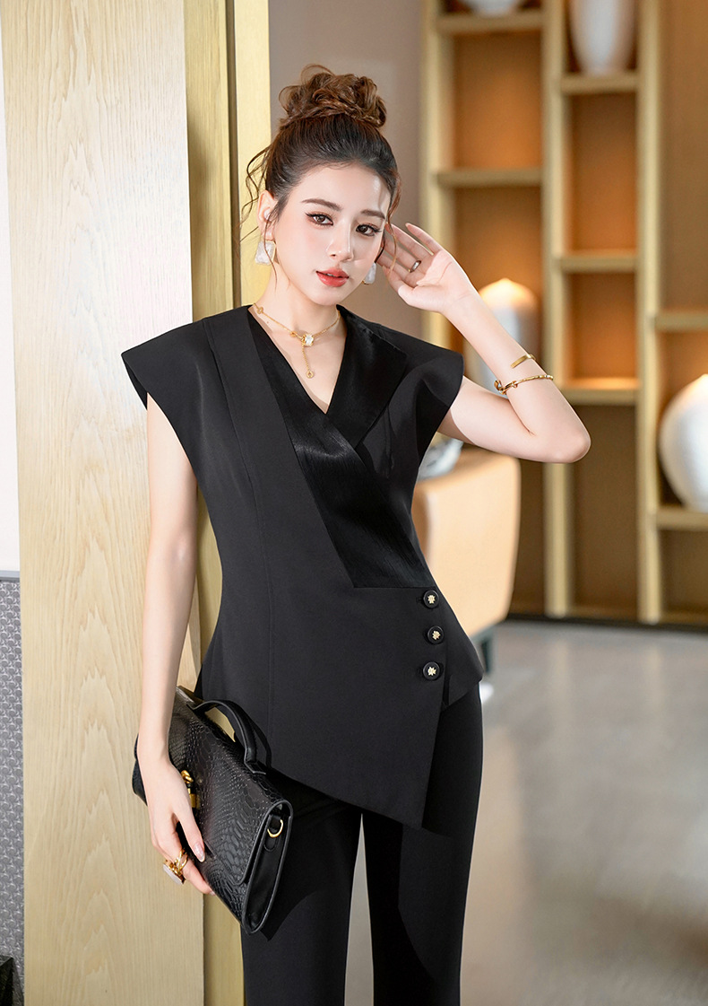 C-4400# 通勤短袖西装女夏季御姐风设计感不规则气质收腰显瘦上衣45315