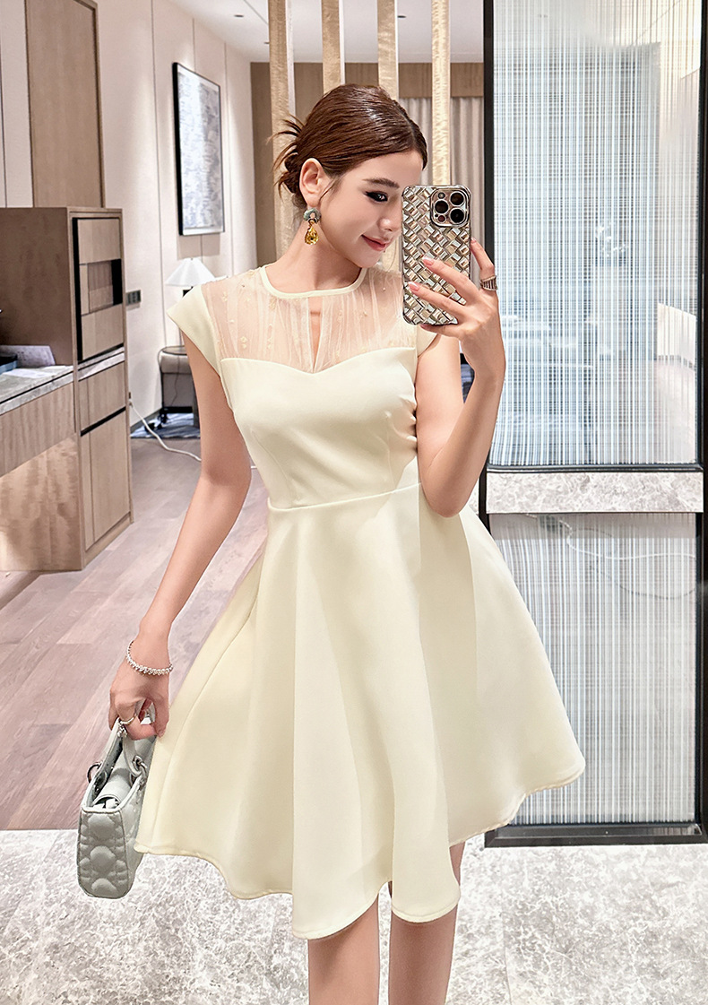 C-4487# 2025夏季新款女装名媛气质掐腰a字连衣裙法式富家千金风裙子21865
