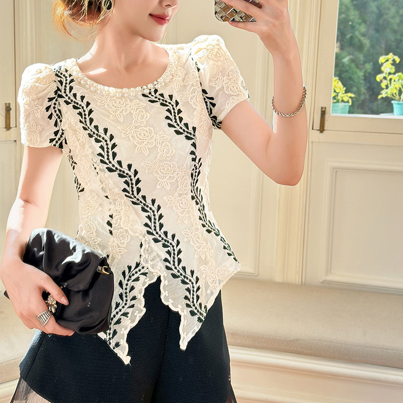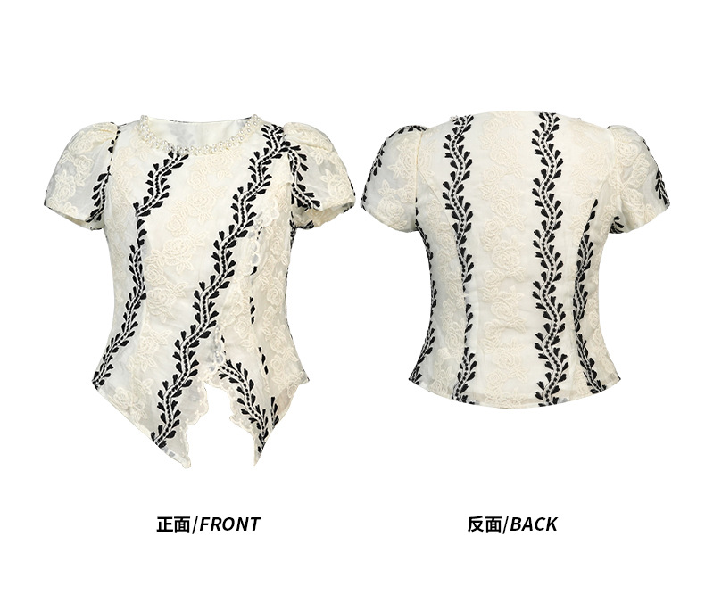 C-4512# 2025早秋新款女装法式设计感不规则开叉蕾丝衫修身显瘦上衣11665
