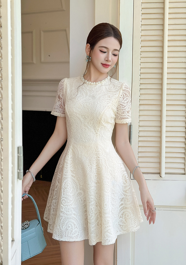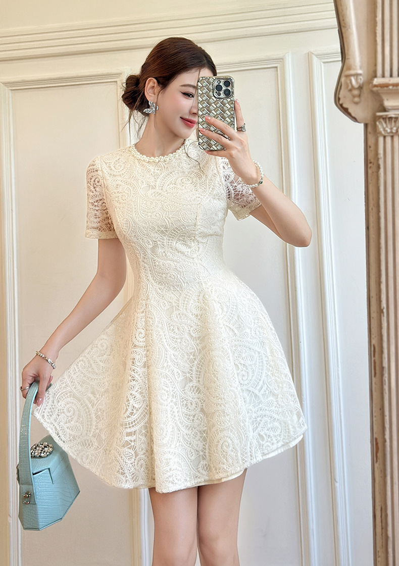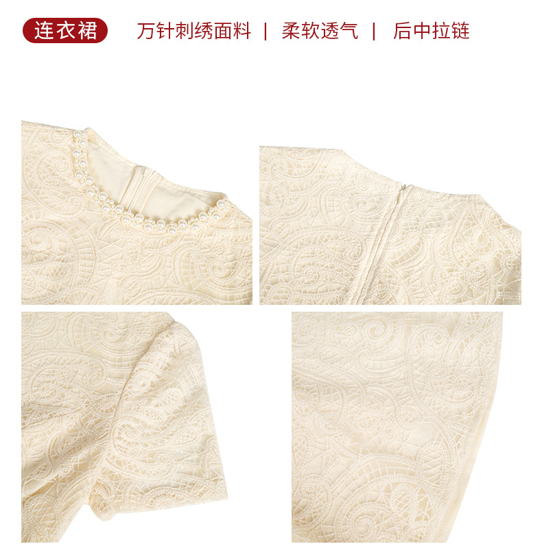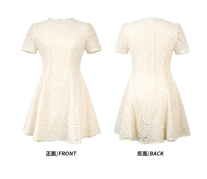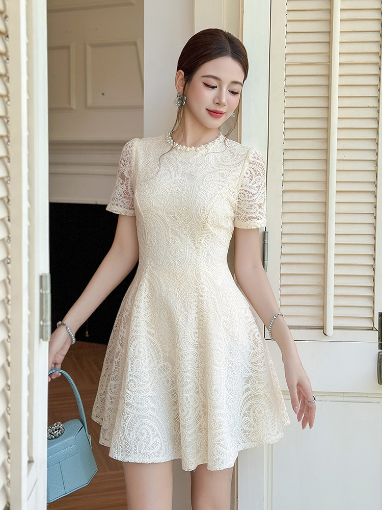 C-4516# 2025早秋新款法式圆领收腰蓬蓬连衣裙刺绣小个子显高a字裙女9055