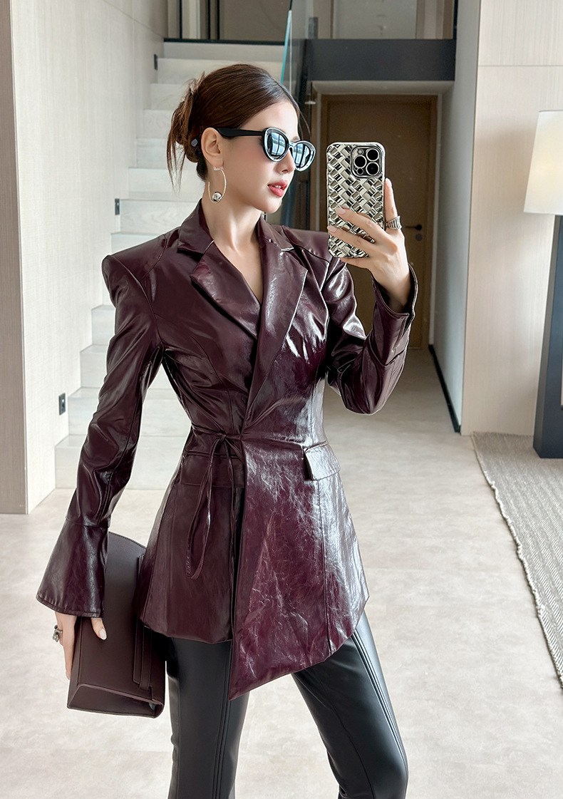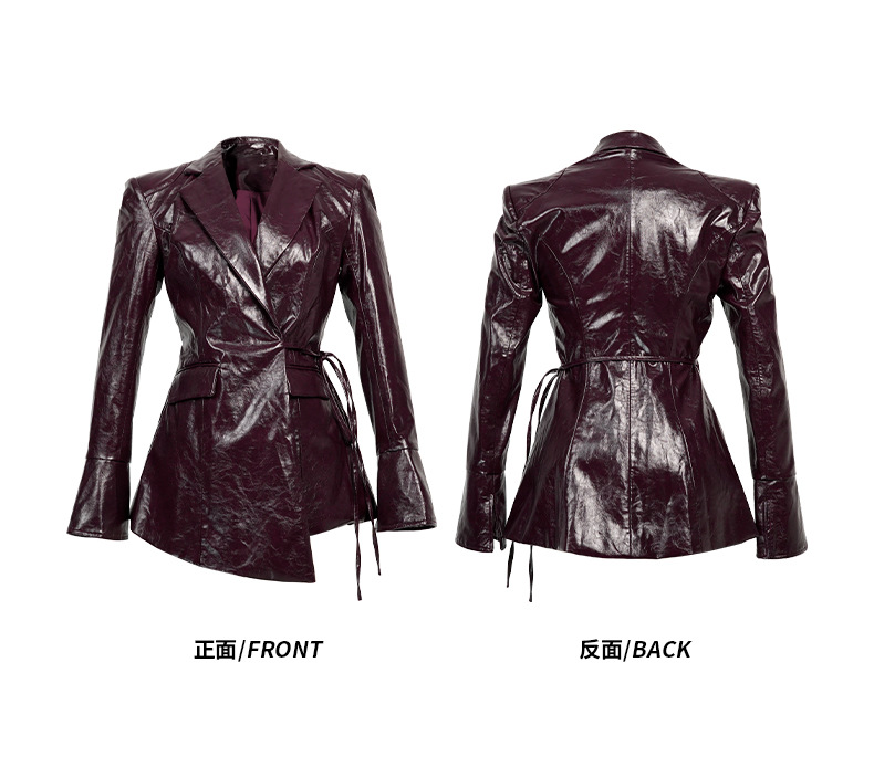 C-4525# 2025秋装新款欧美气质PU皮夹克上衣复古酷飒机车皮衣外套女35234