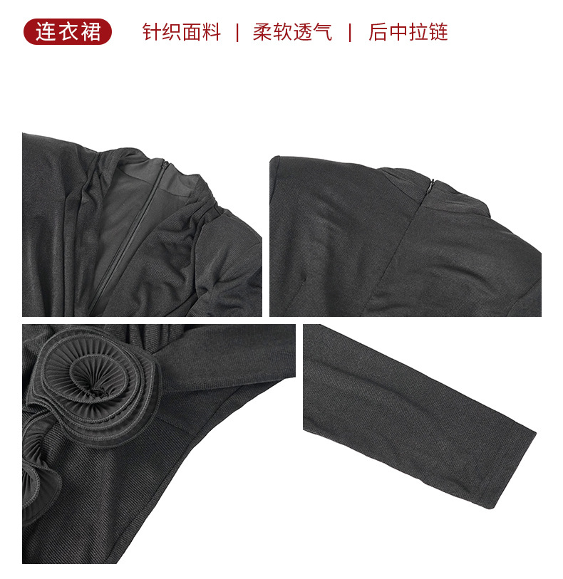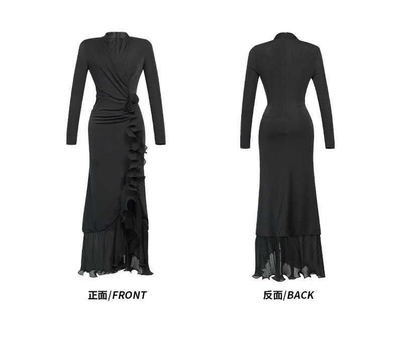 C-4549# 冬装新款女法式性感V领设计感荷叶边不规则开叉收腰连衣裙9130