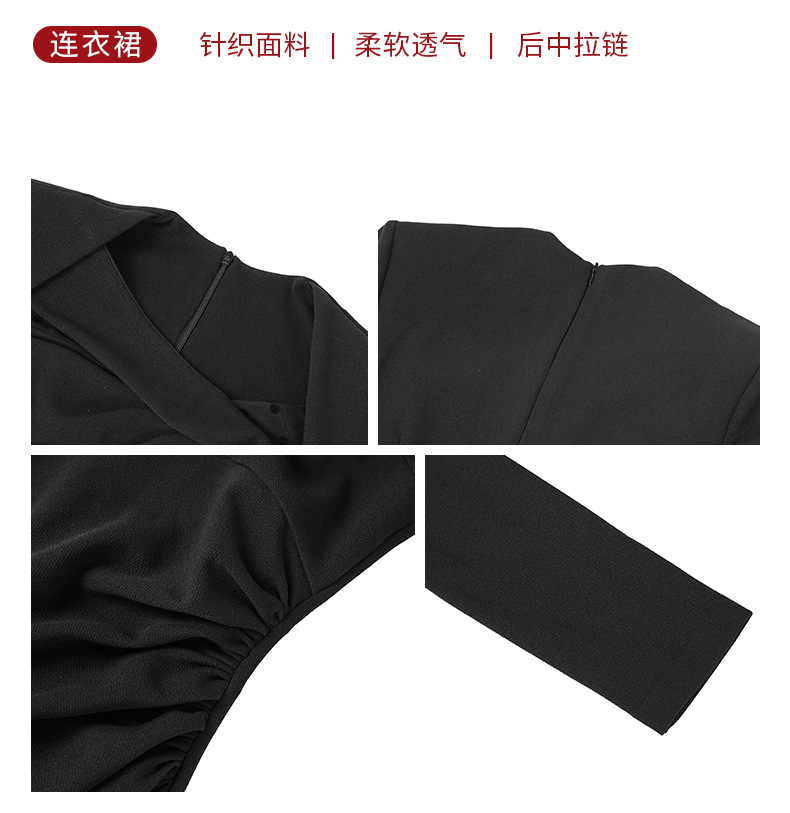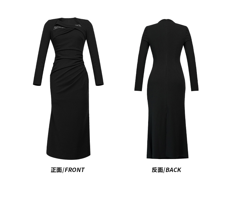 C-4561# 黑色长袖性感包臀连衣裙女2025秋新款法式收腰显瘦气质长裙31323