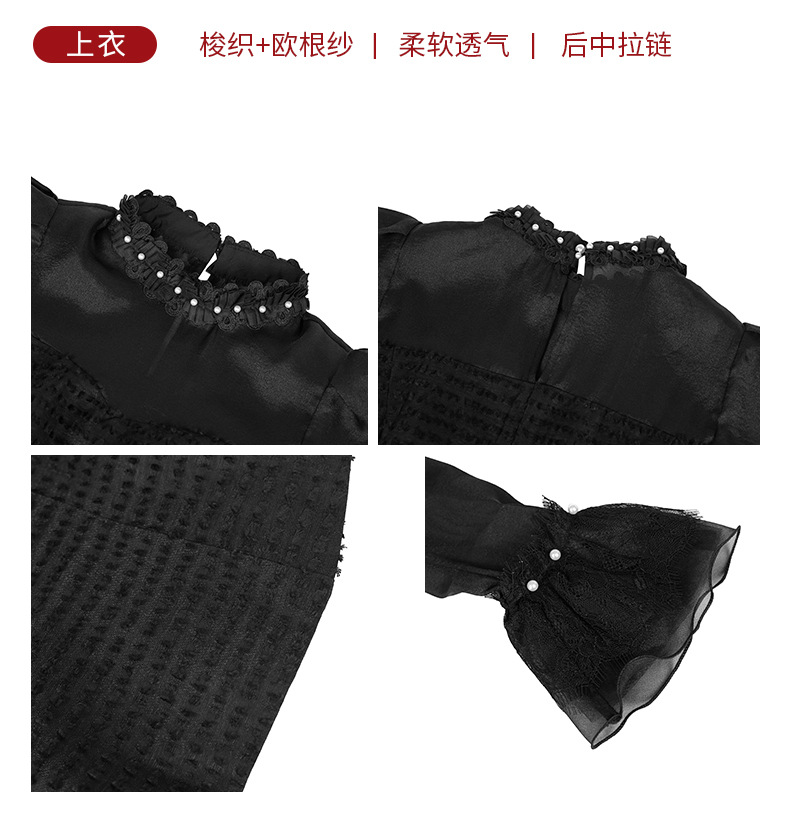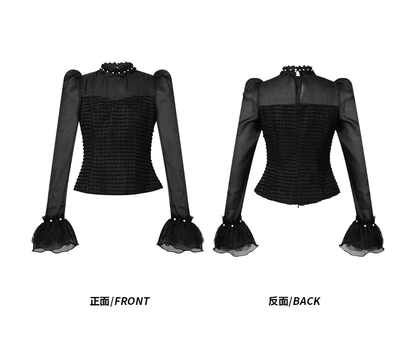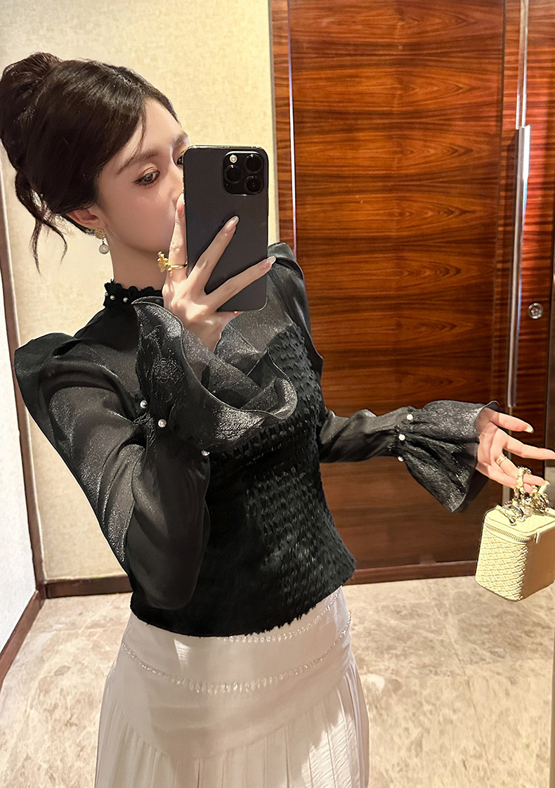 C-4569# miu系立领收腰打底衫秋冬新款百搭上衣仙气喇叭袖拼接内搭11690
