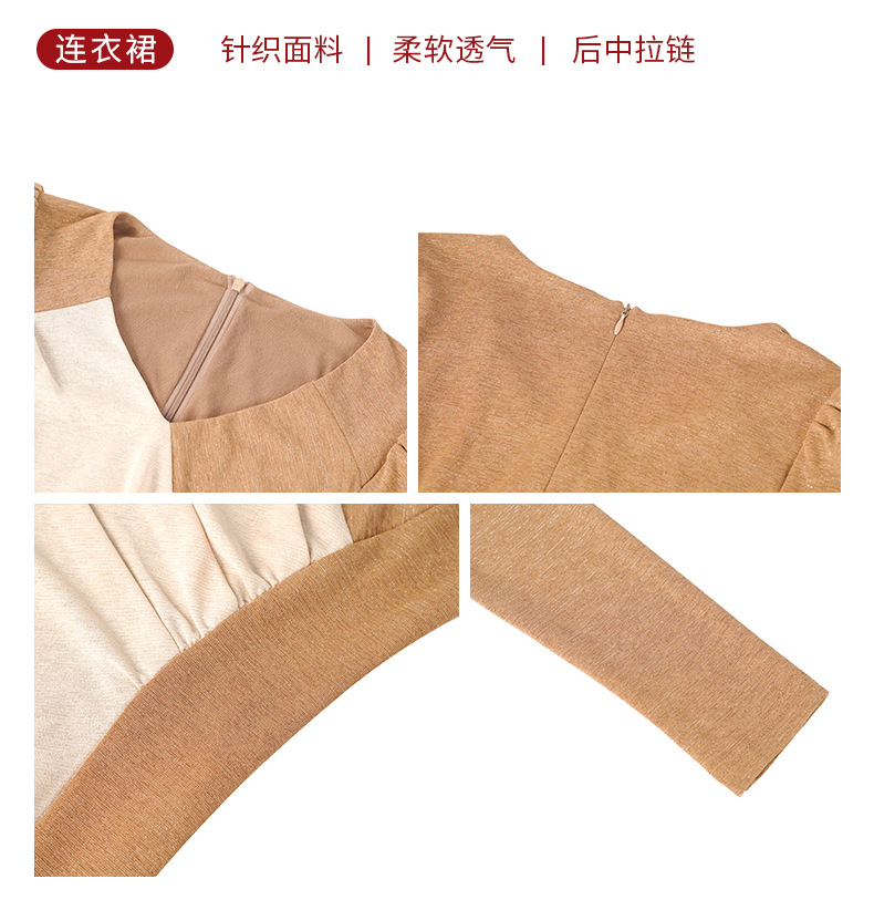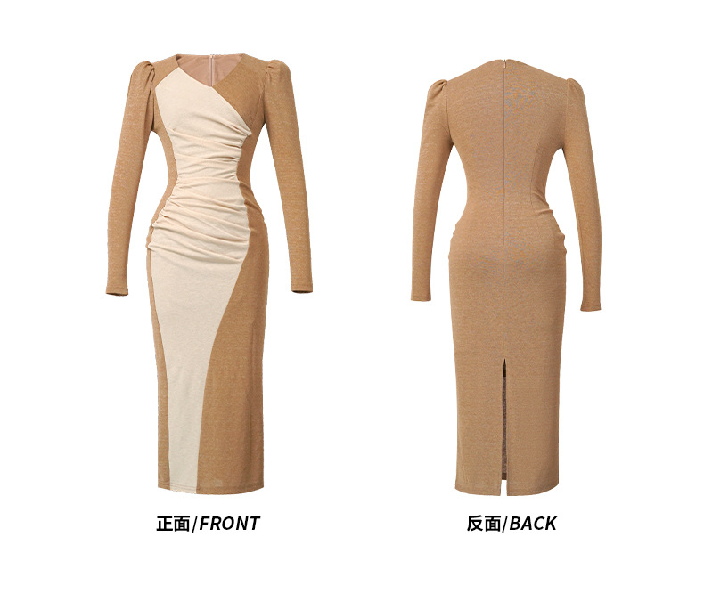 C-4574# 2025秋冬装新款女法式V领设计感撞色拼接修身包臀连衣裙内搭21896