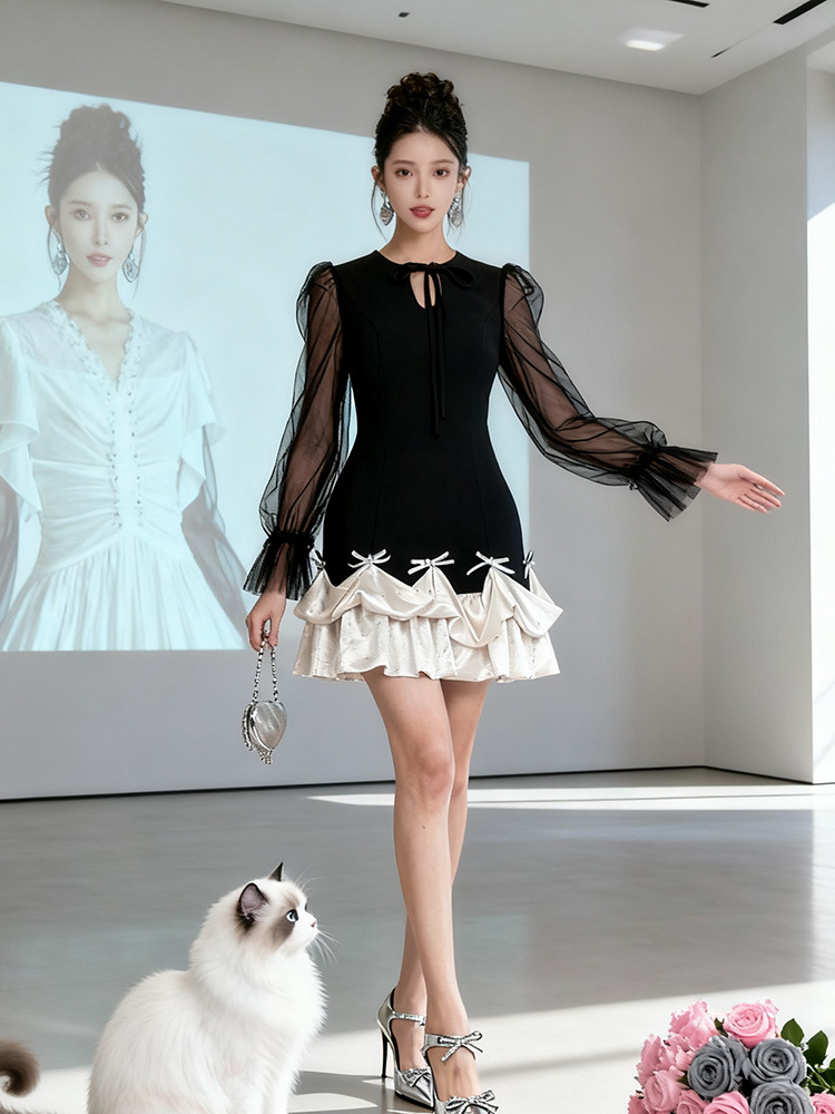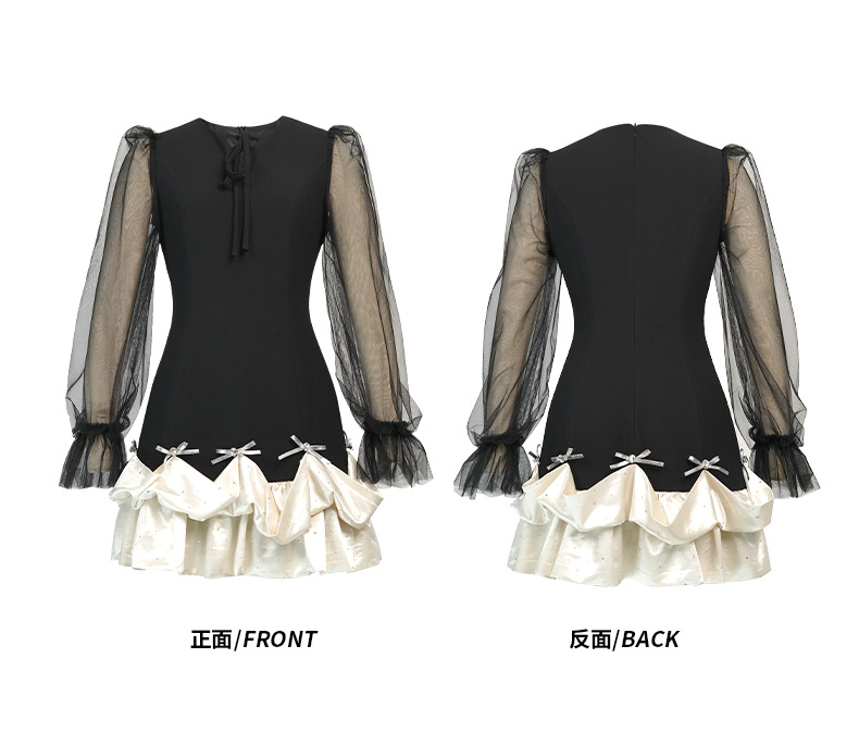 C-4578# miu系千金生日蓬蓬礼服裙2025秋冬装设计感圆领收腰连衣裙65478