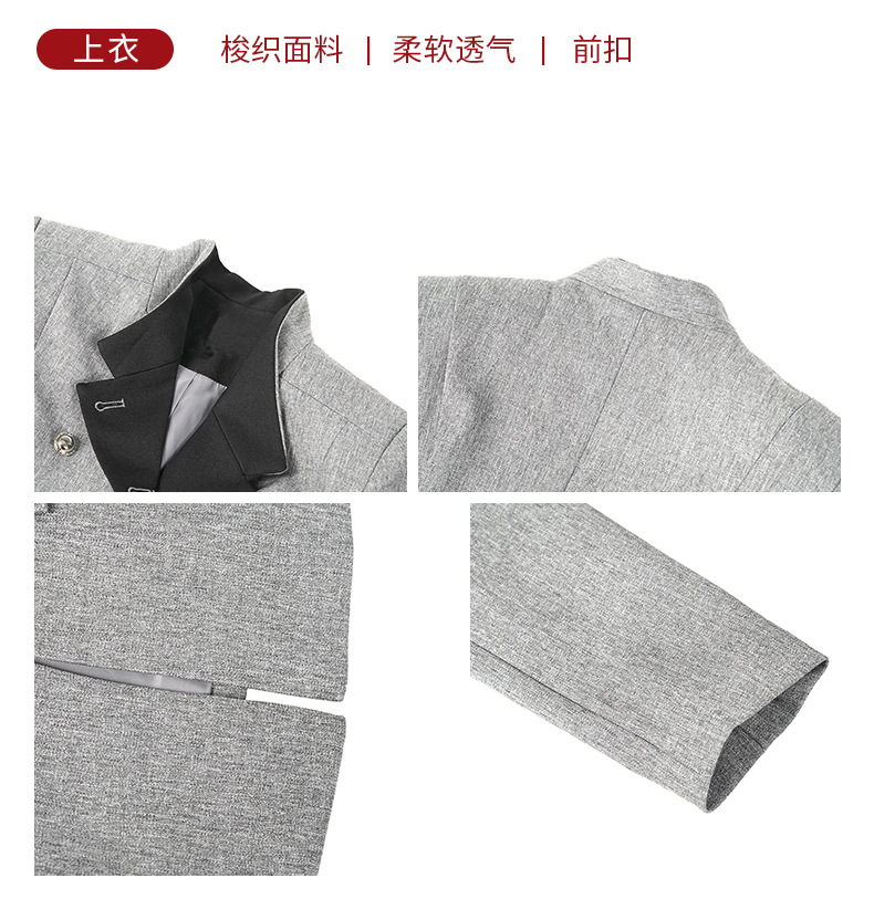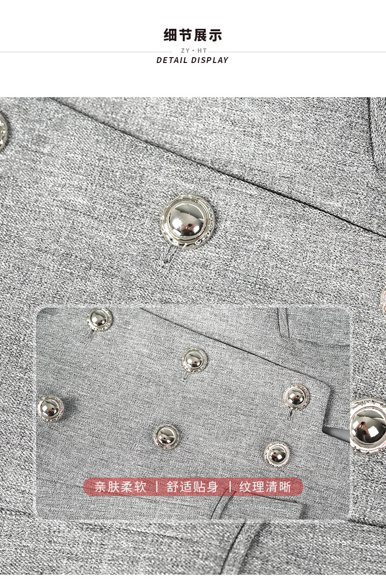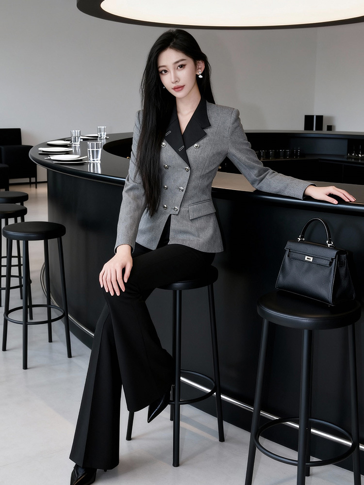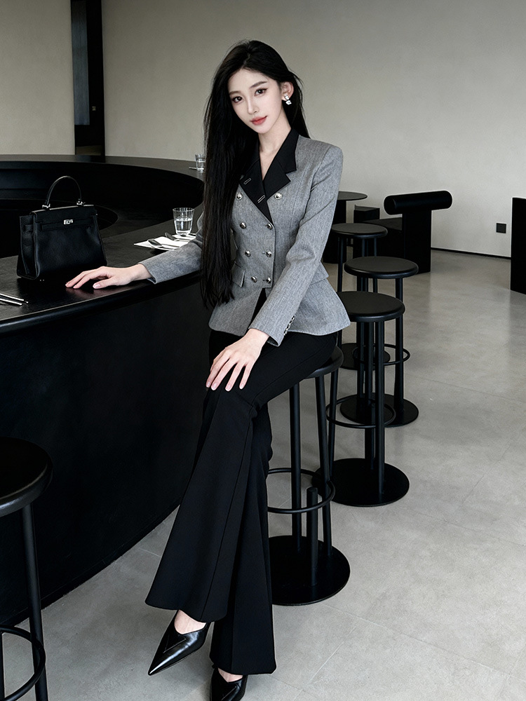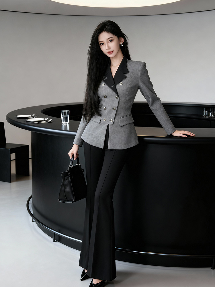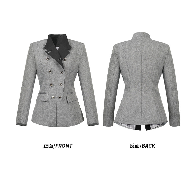C-4591# 灰色撞色双排扣西装上衣女2025新款通勤气质设计感显瘦外套35417