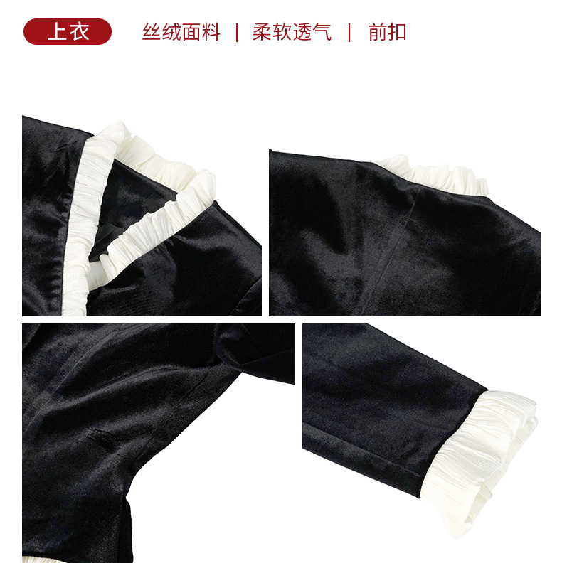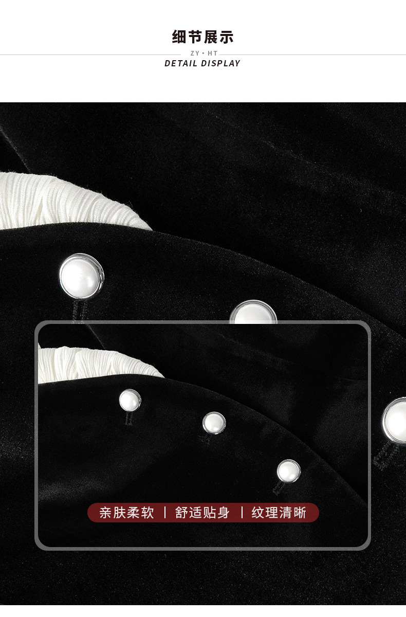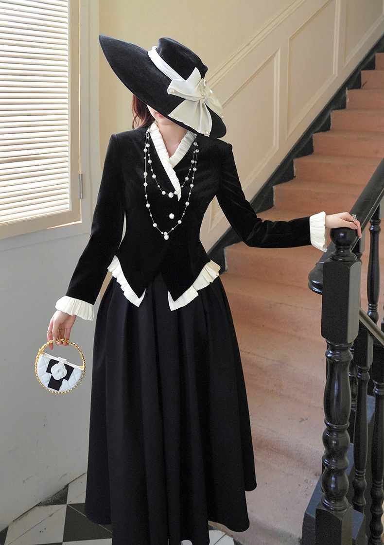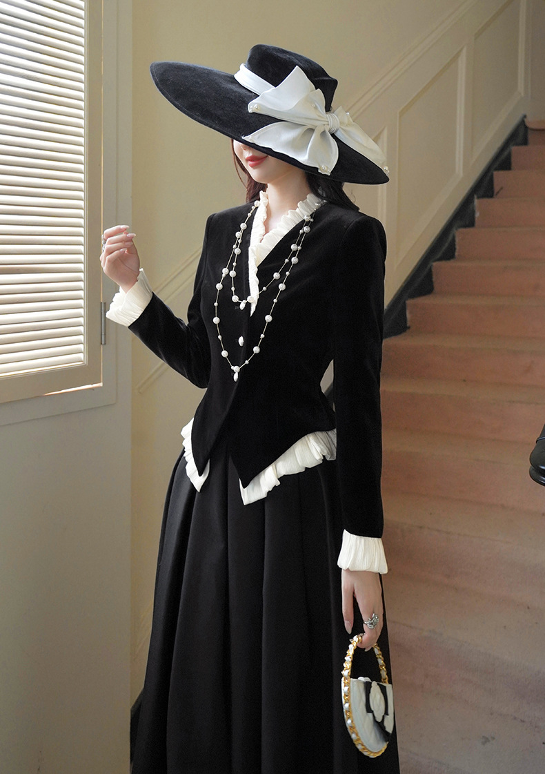 C-4612# 秋冬法式丝绒上衣女收腰显瘦撞色拼接名媛风复古修身外套35239