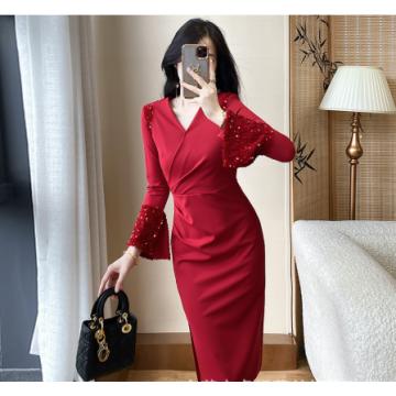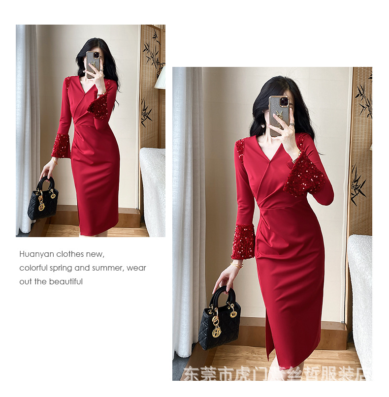 A-8279# 2630气质名媛红色高级感法式v领修身包臀连衣裙标价不得低于238