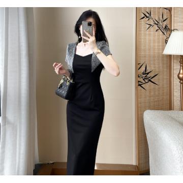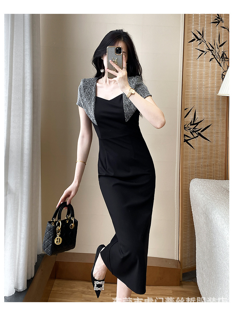 A-8280# 2629优雅贵气洋气高级感连衣裙方领拼接修身包臀标价不得低于238