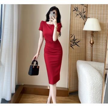 A-8288# 2508气质修身简约红色宴会喜婆婆连衣裙平时可穿标价不得低于228