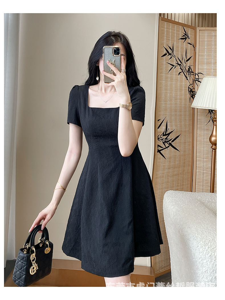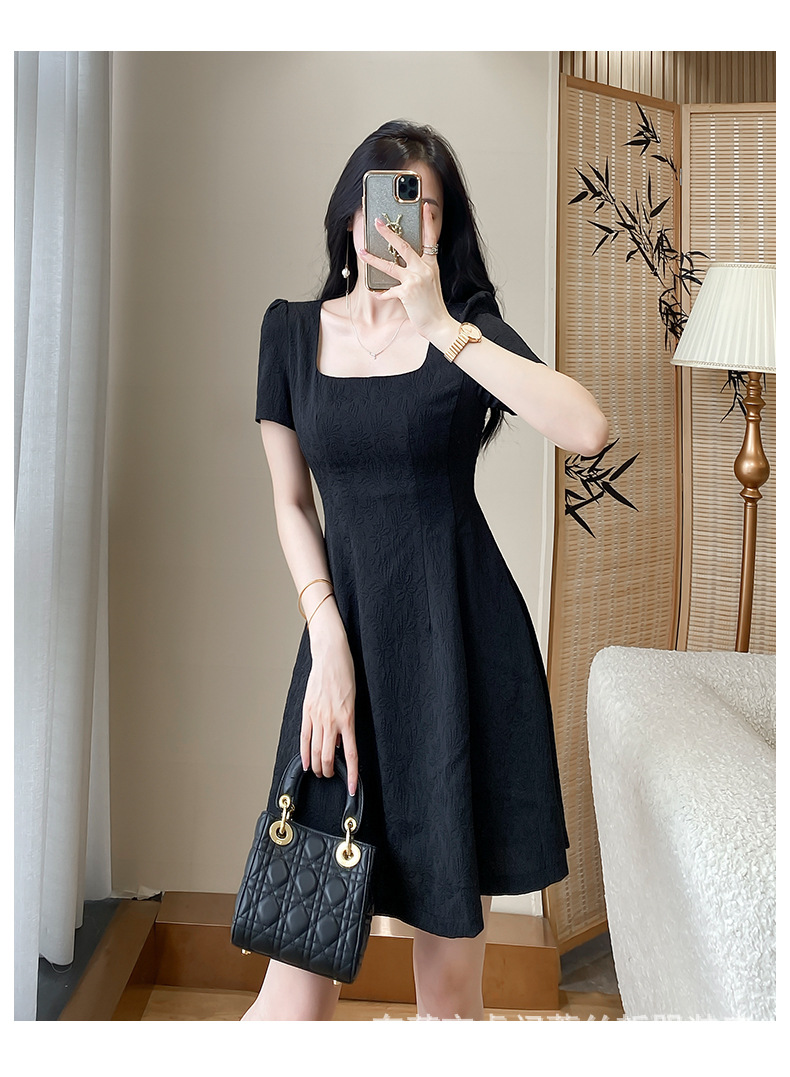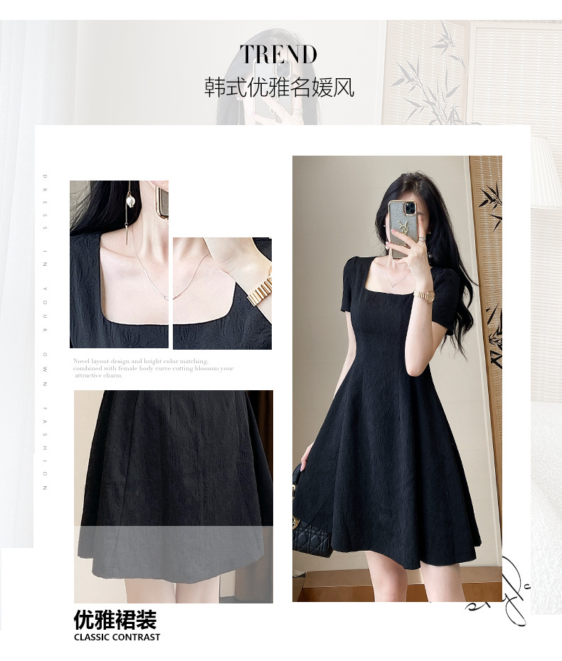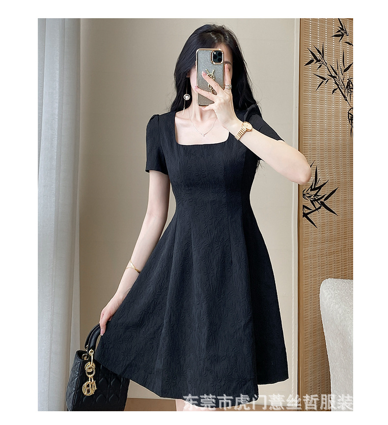 A-8289# 2520赫本风复古方领气质小黑裙收腰显瘦短连衣裙标价不得低于188