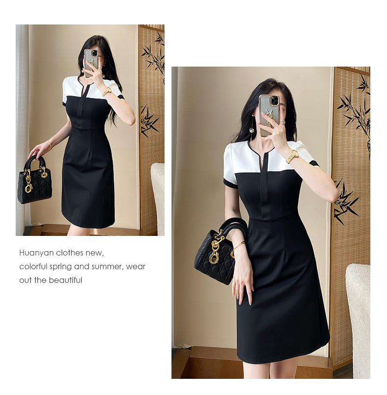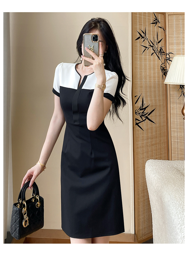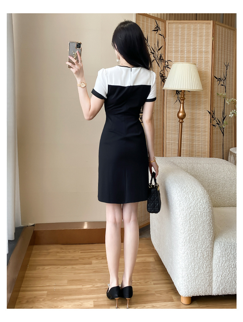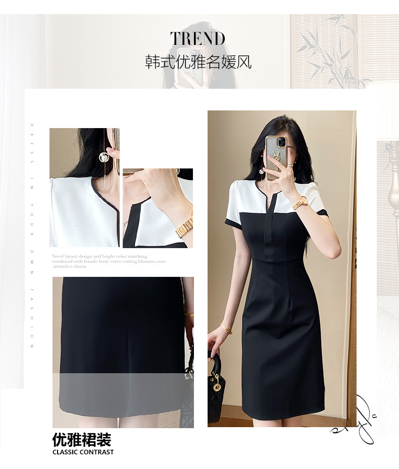 A-8292# 2518设计感通勤风黑白拼接职场白领工作服连衣裙标价不得低于228