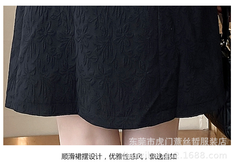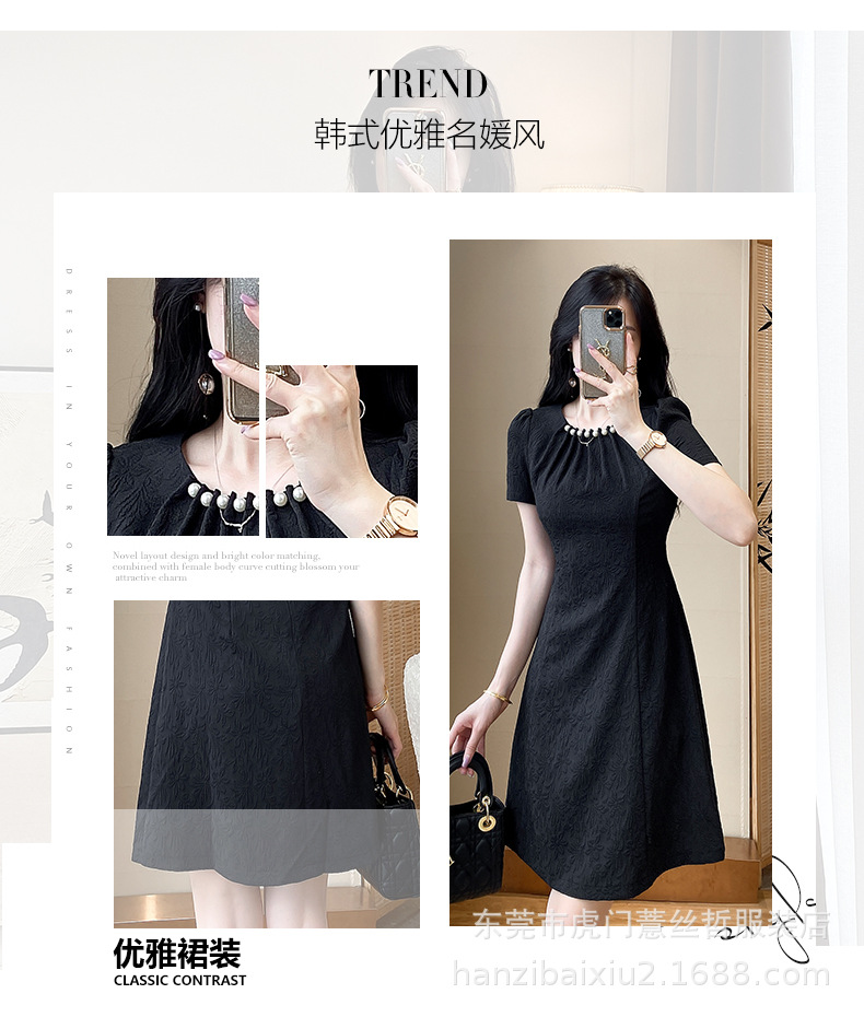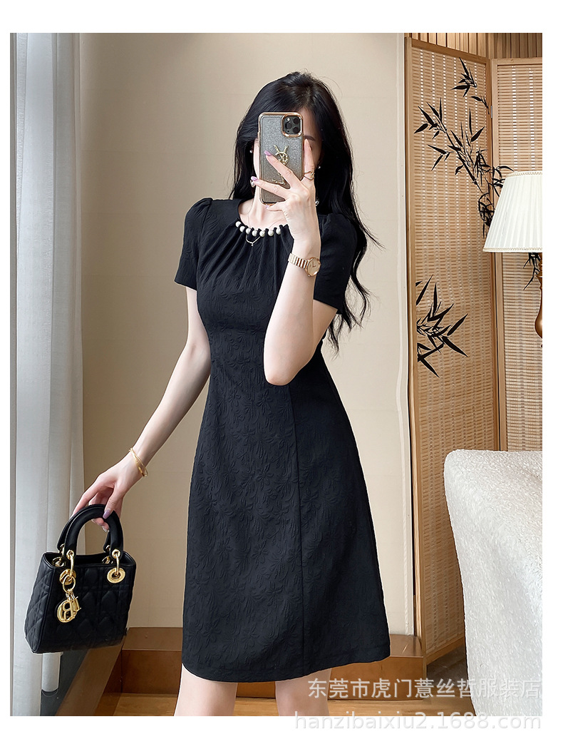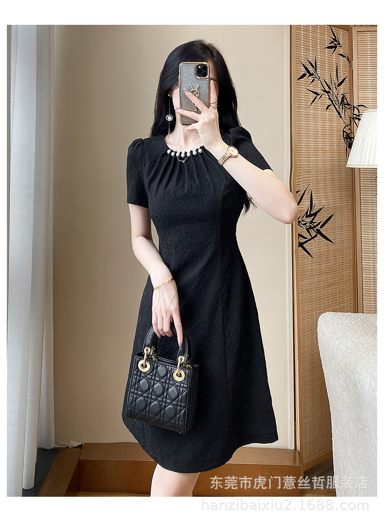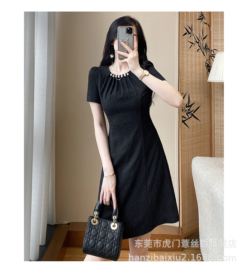 A-8296# 2510气质收腰修身提花薄款夏季小黑裙珍珠连衣裙标价不得低于188