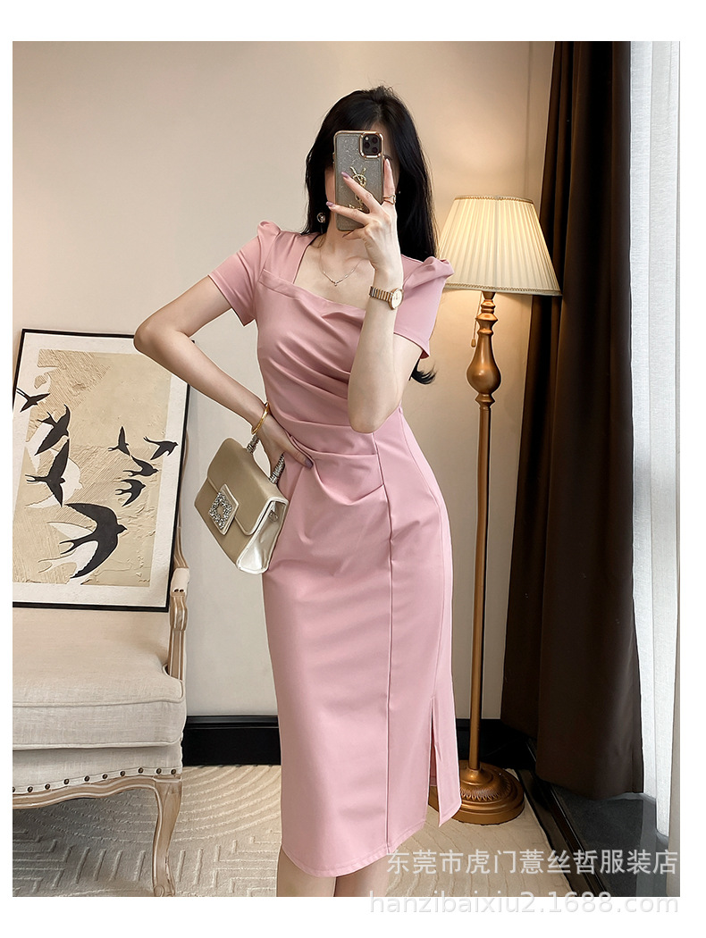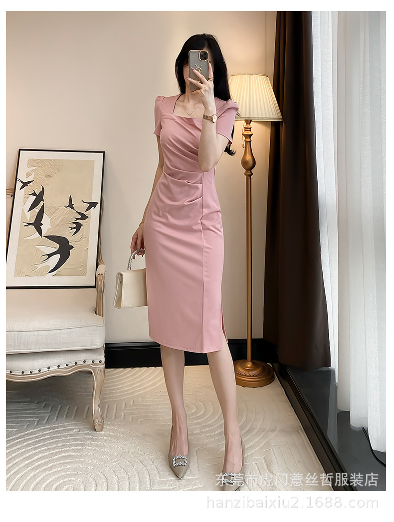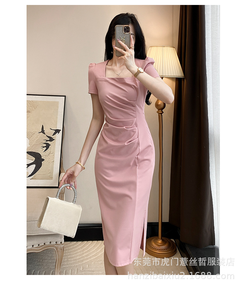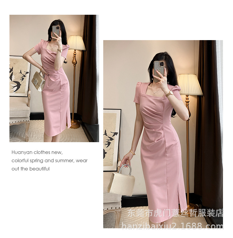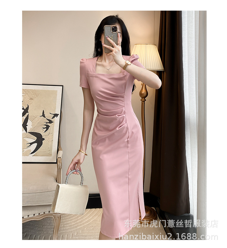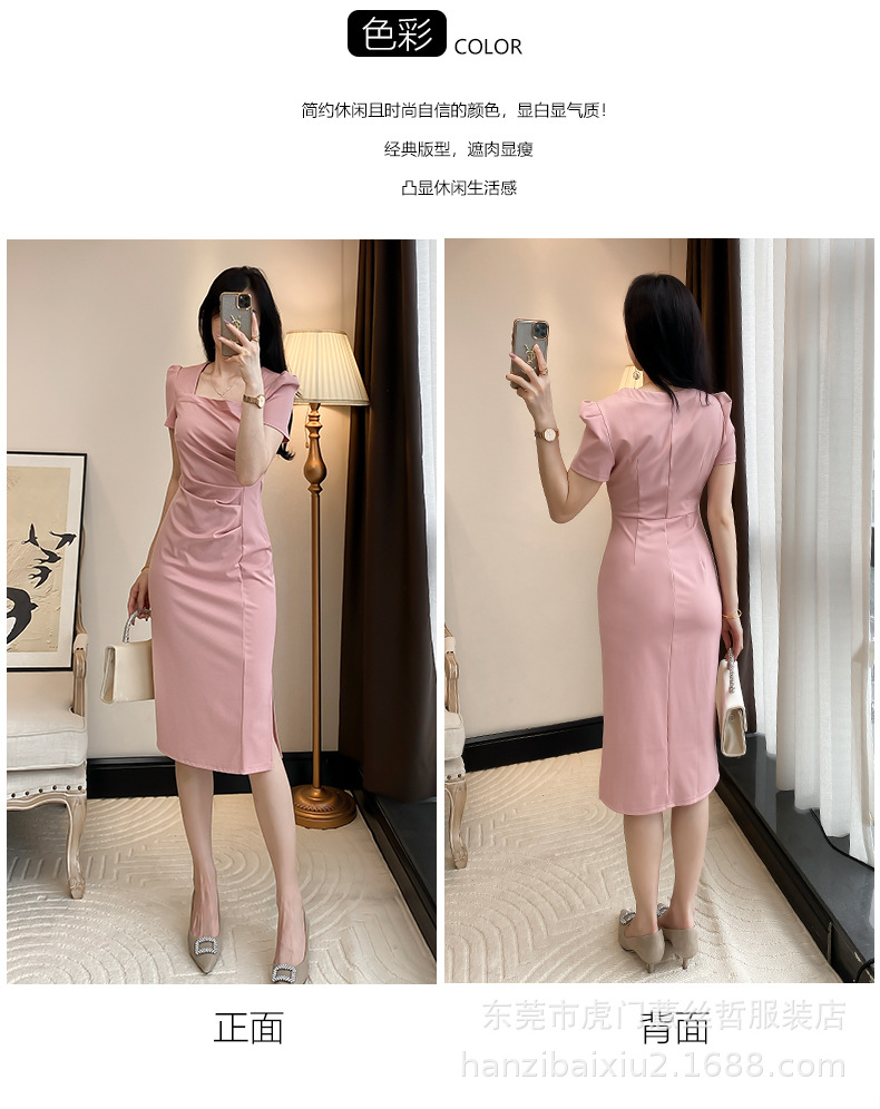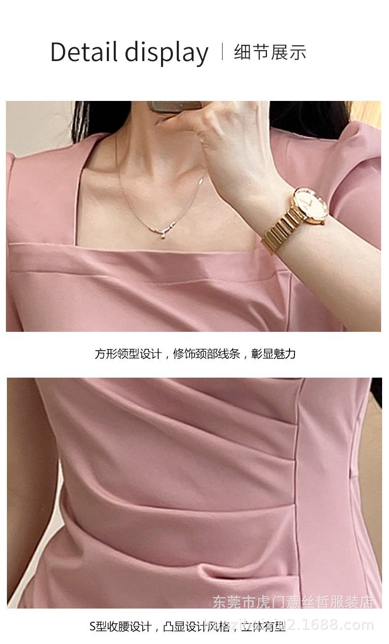 A-8299# 10901气质粉色温柔风显瘦包臀连衣裙修身显腿长标价不得低于218