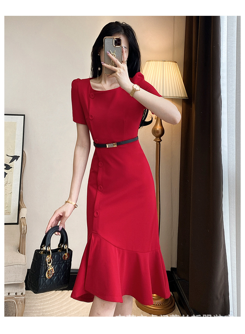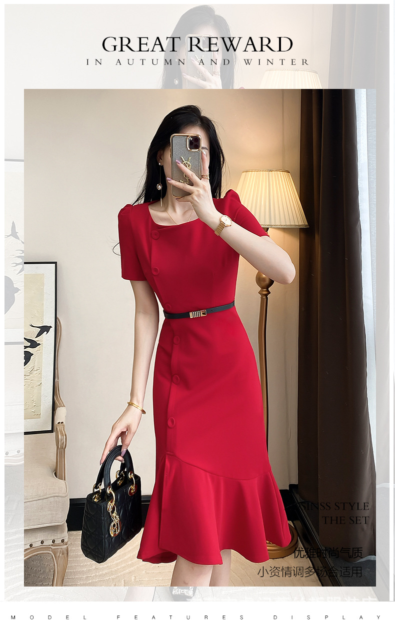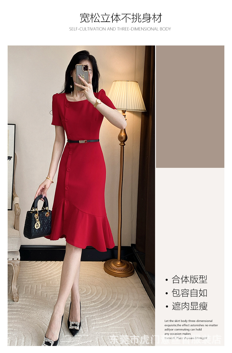 A-8305# 2358气质酒红宴会年轻款订婚敬酒服礼服连衣裙标价不得低于228