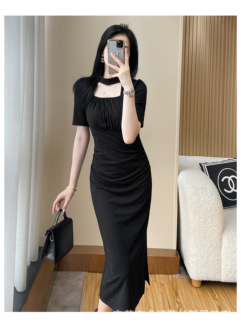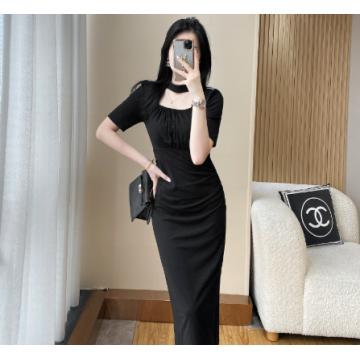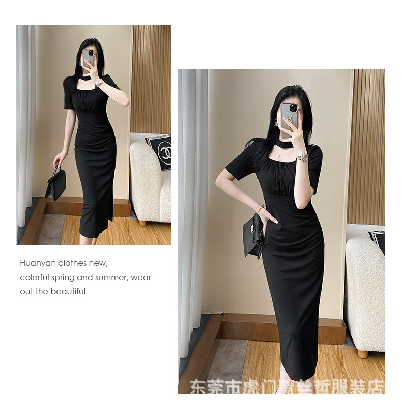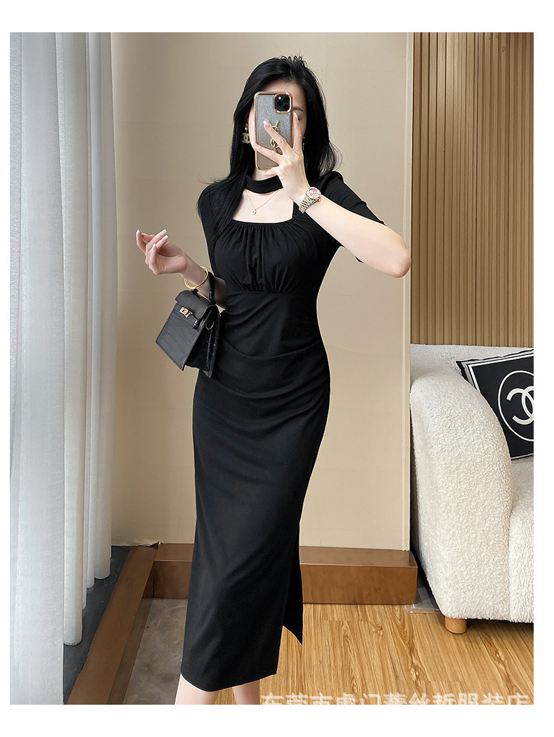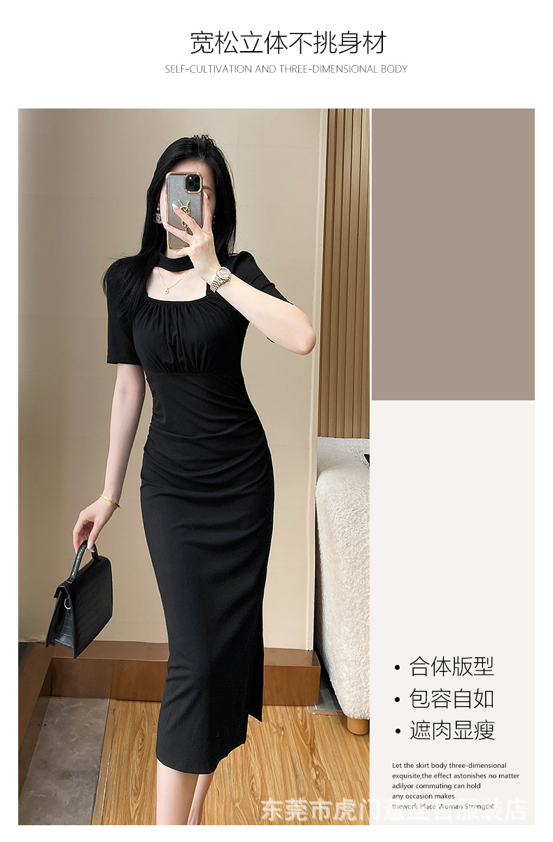 A-8320# 2315夏季气质设计感收腰显瘦连衣裙赫本风小黑裙标价不得低于238
