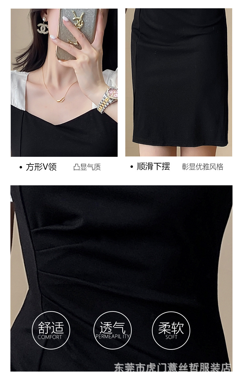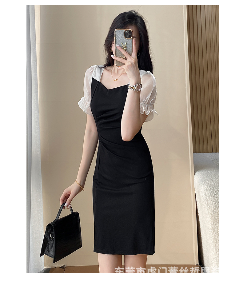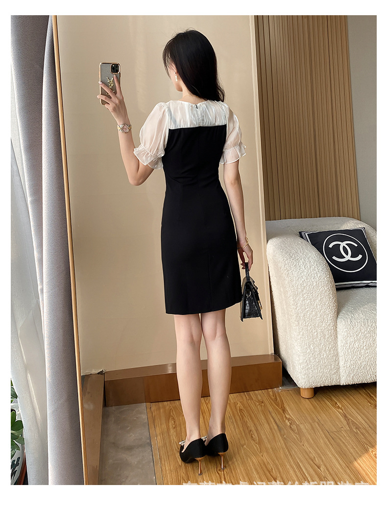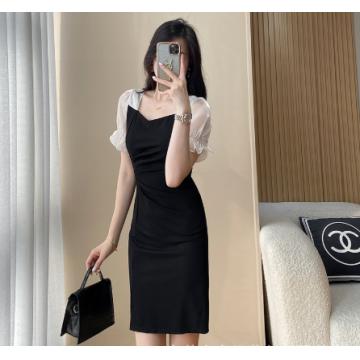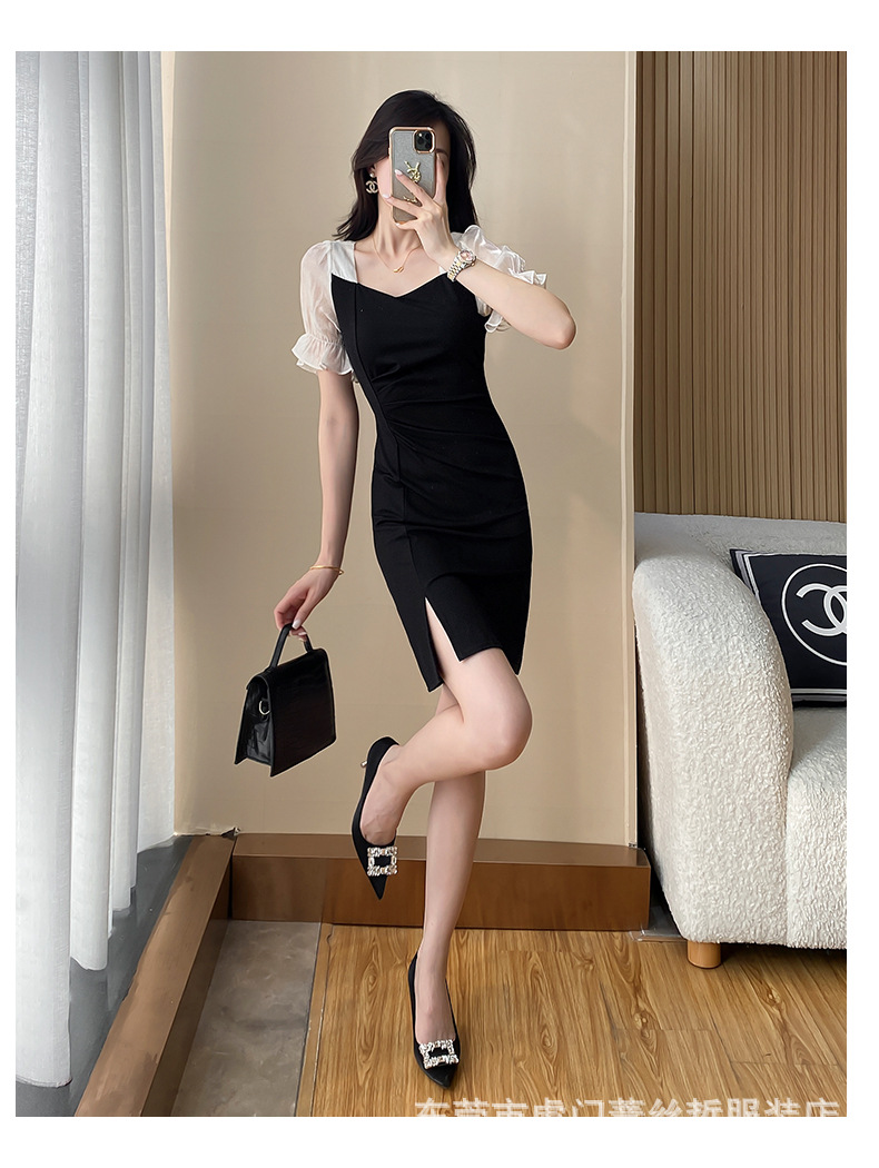 A-8327# 1321夏季新款泡泡袖拼接包臀气质连衣裙小黑裙标价不得低于238
