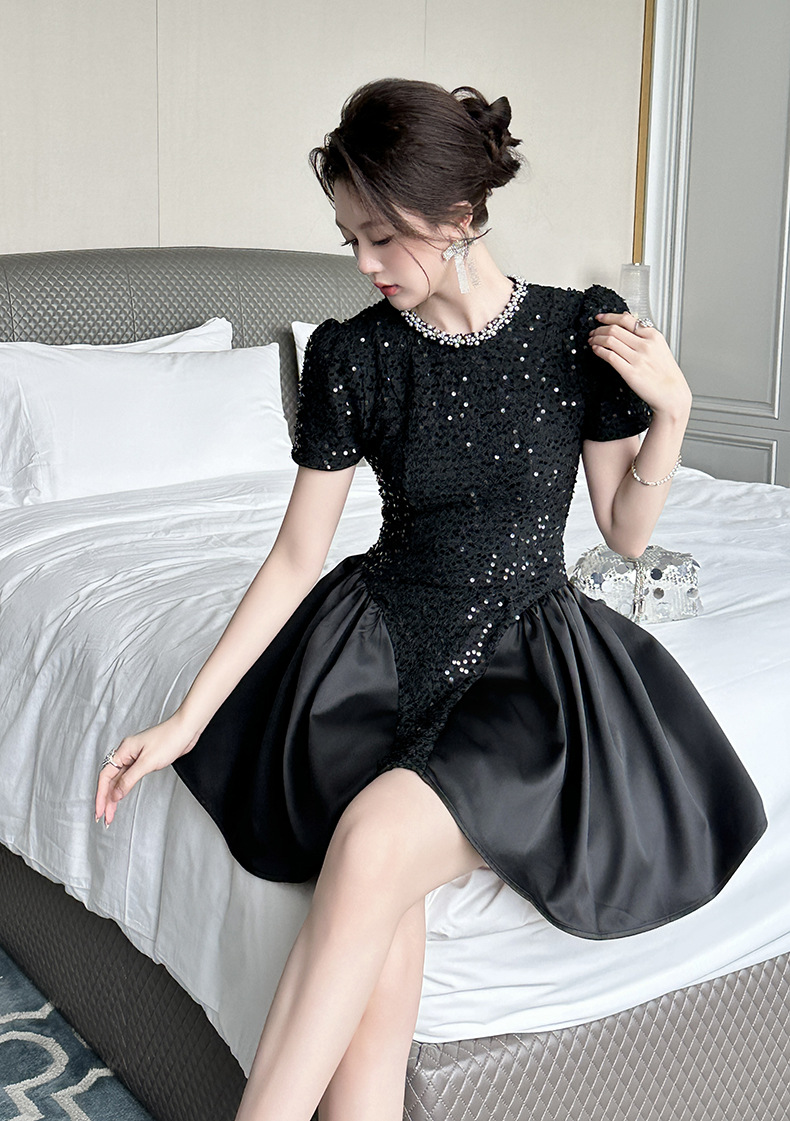 C-2186# 小个子生日礼服裙2025夏季新款女装重工镶钻亮片收腰连衣裙21695