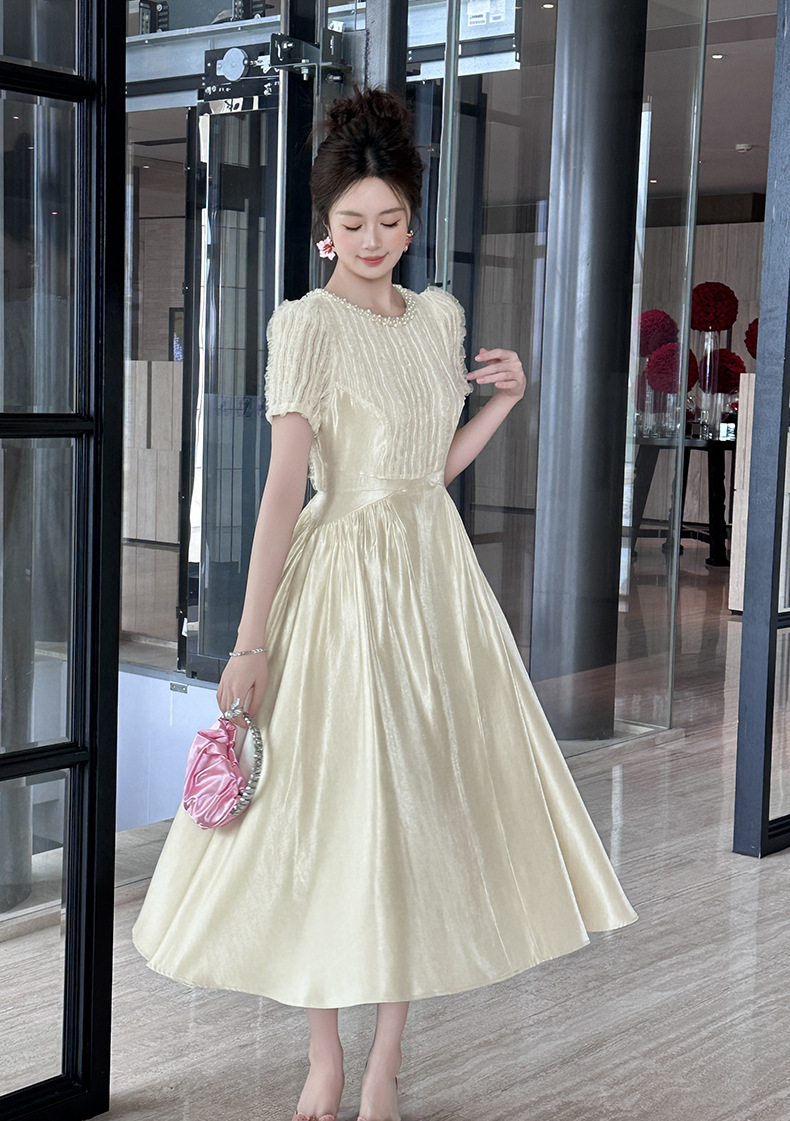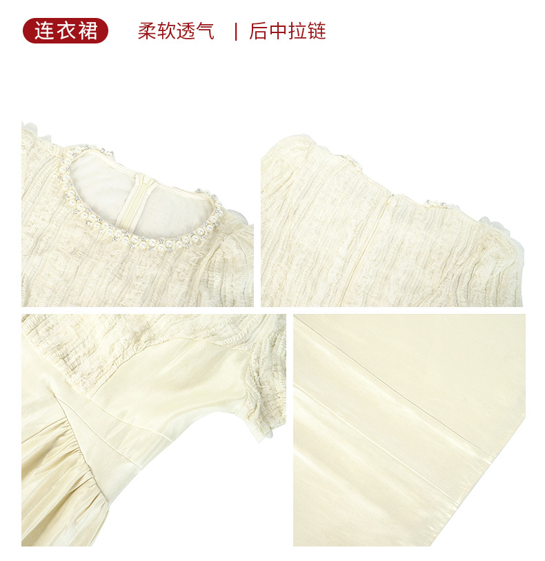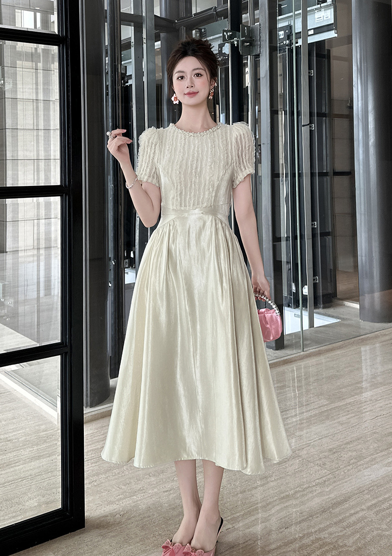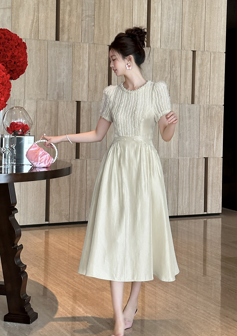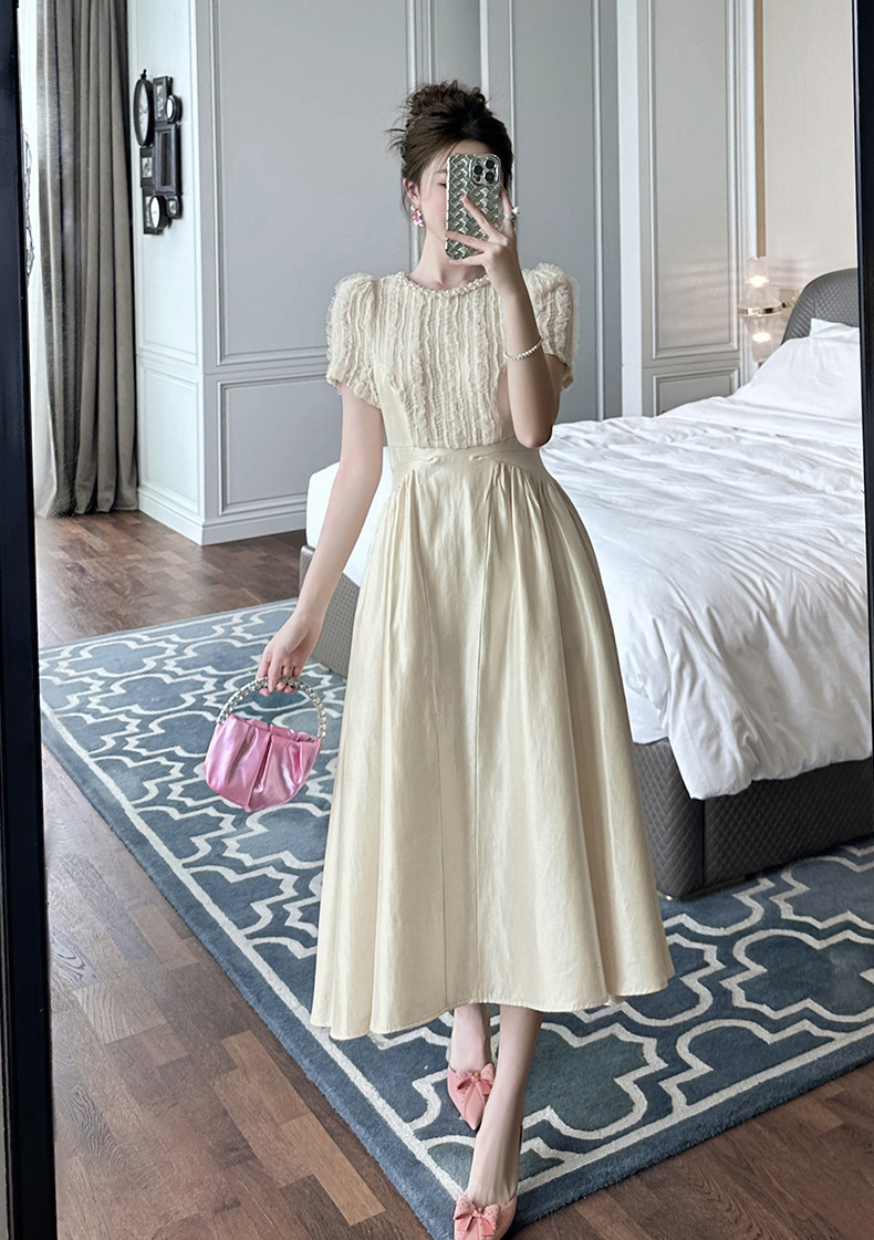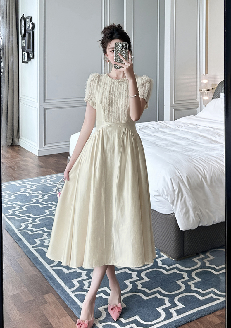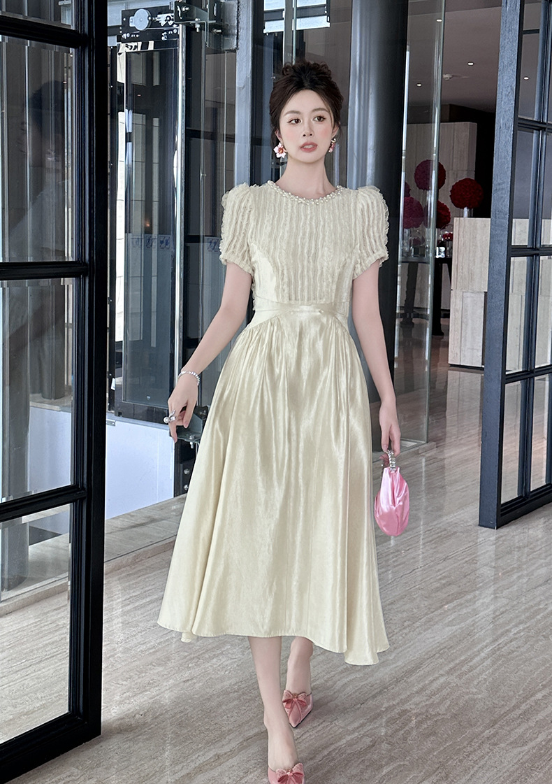 C-4002# 系泡泡袖连衣裙女2025夏季新款收腰显瘦chic大摆长裙子45177