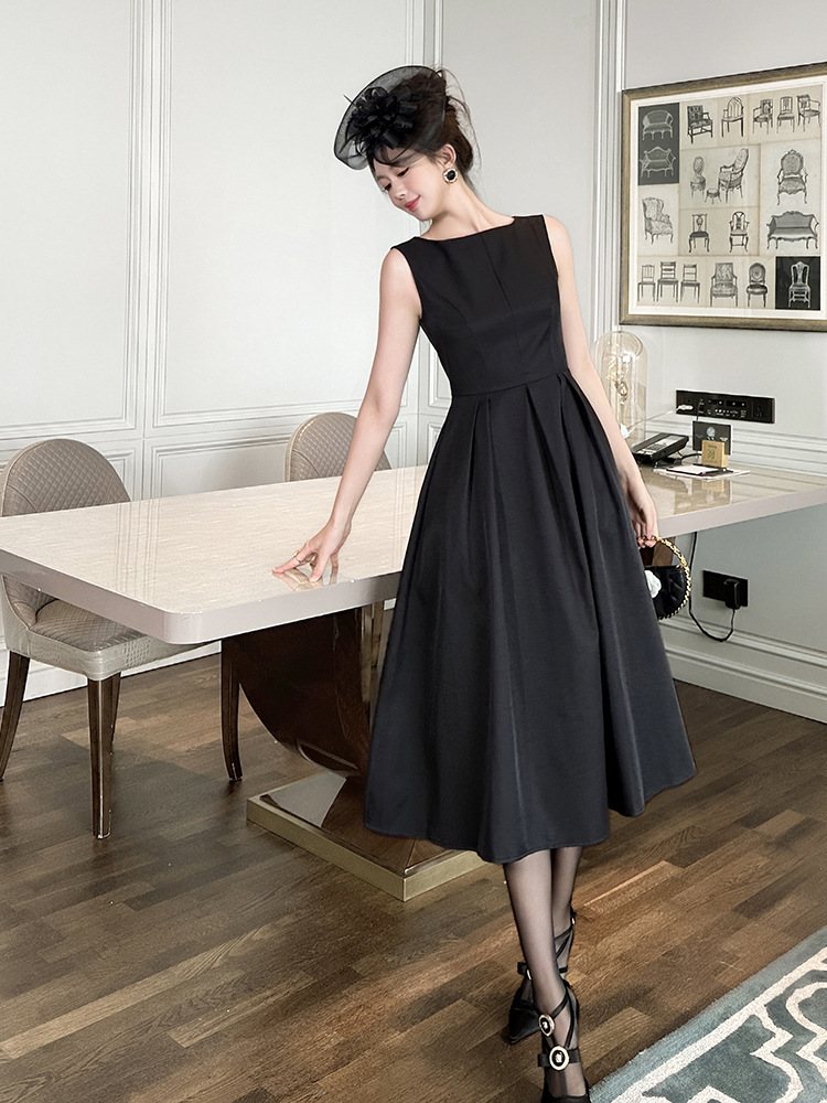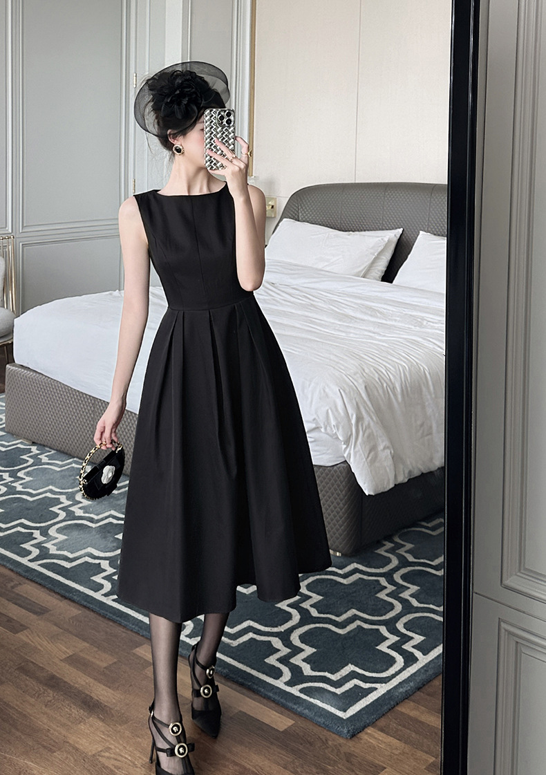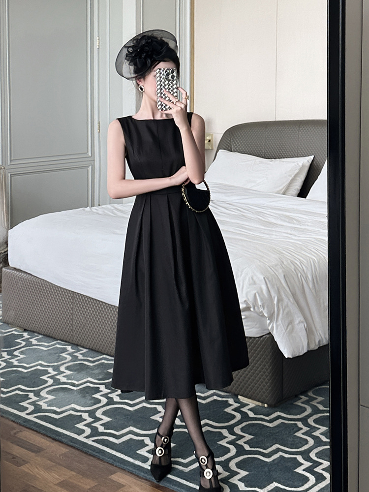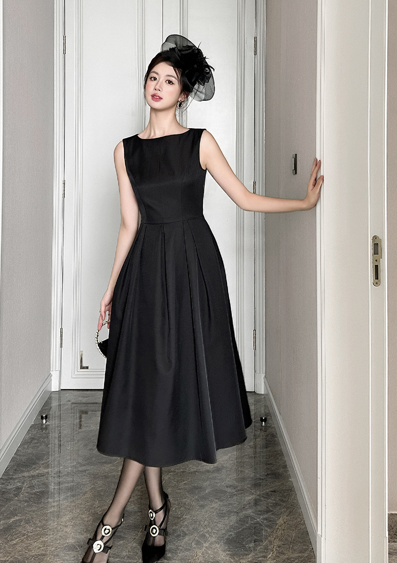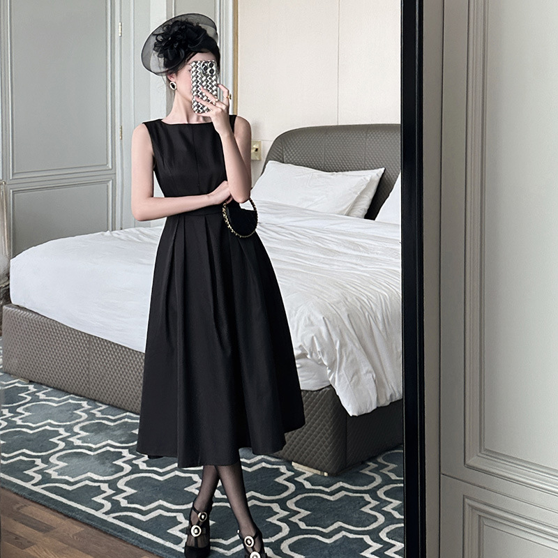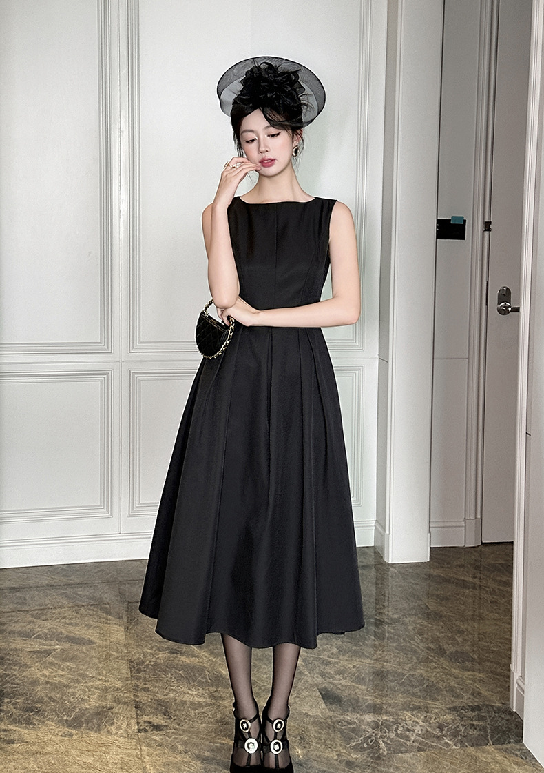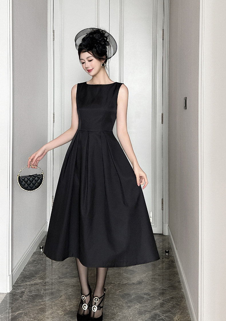 C-4008# 2025夏季新款女装优雅气质正式场合长裙收腰无袖背心连衣裙9793