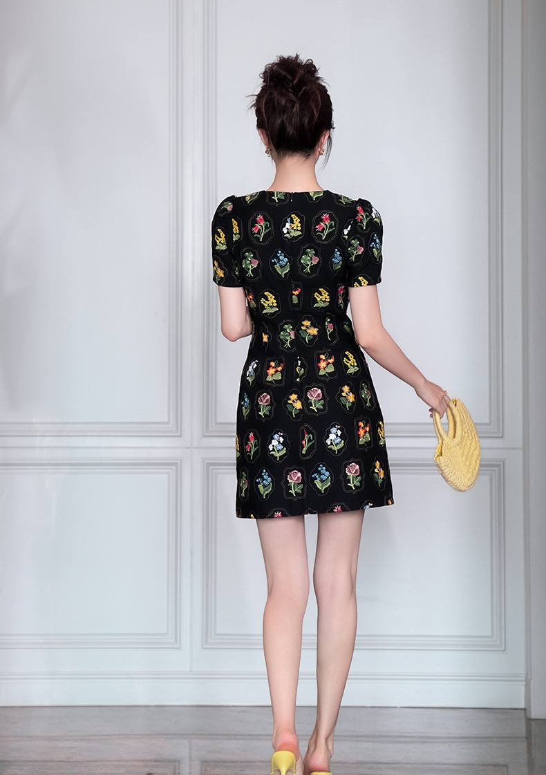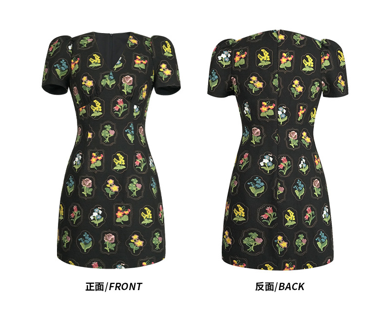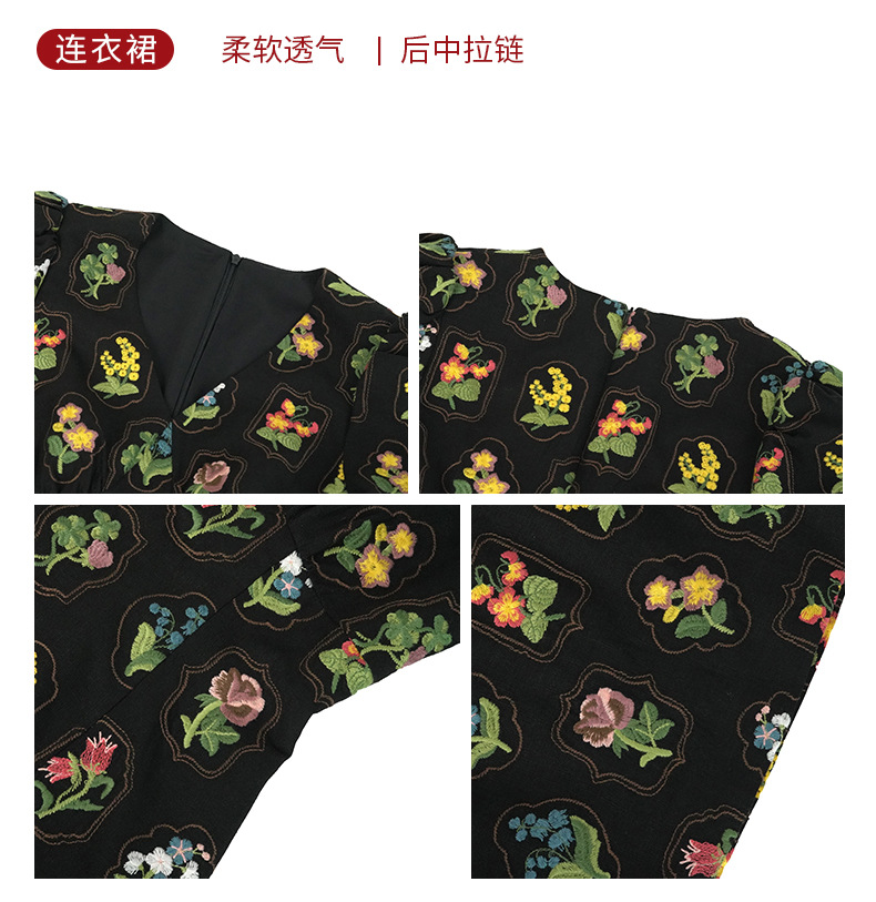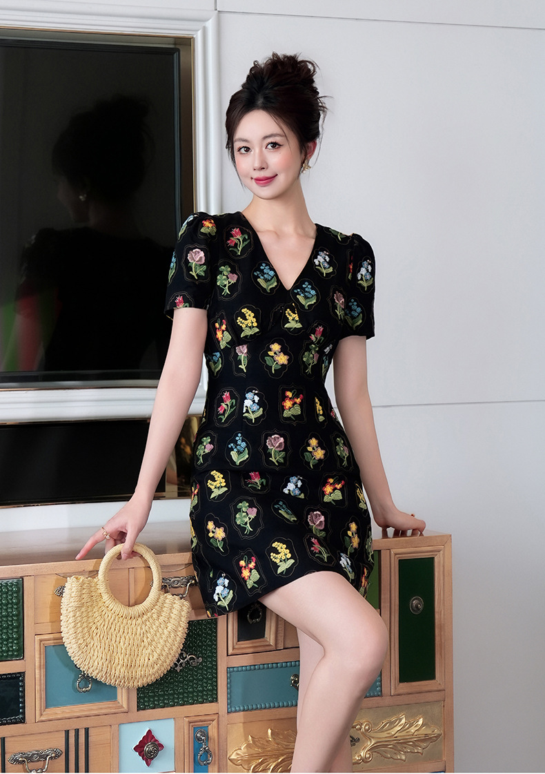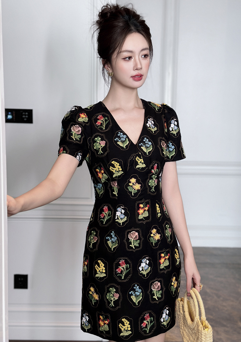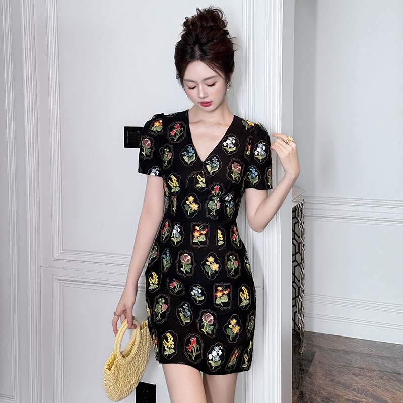 C-4010# 2025夏季新款女装复古气质重工设计感刺绣修身包臀连衣裙51402