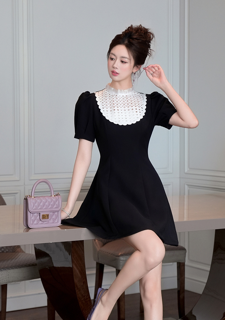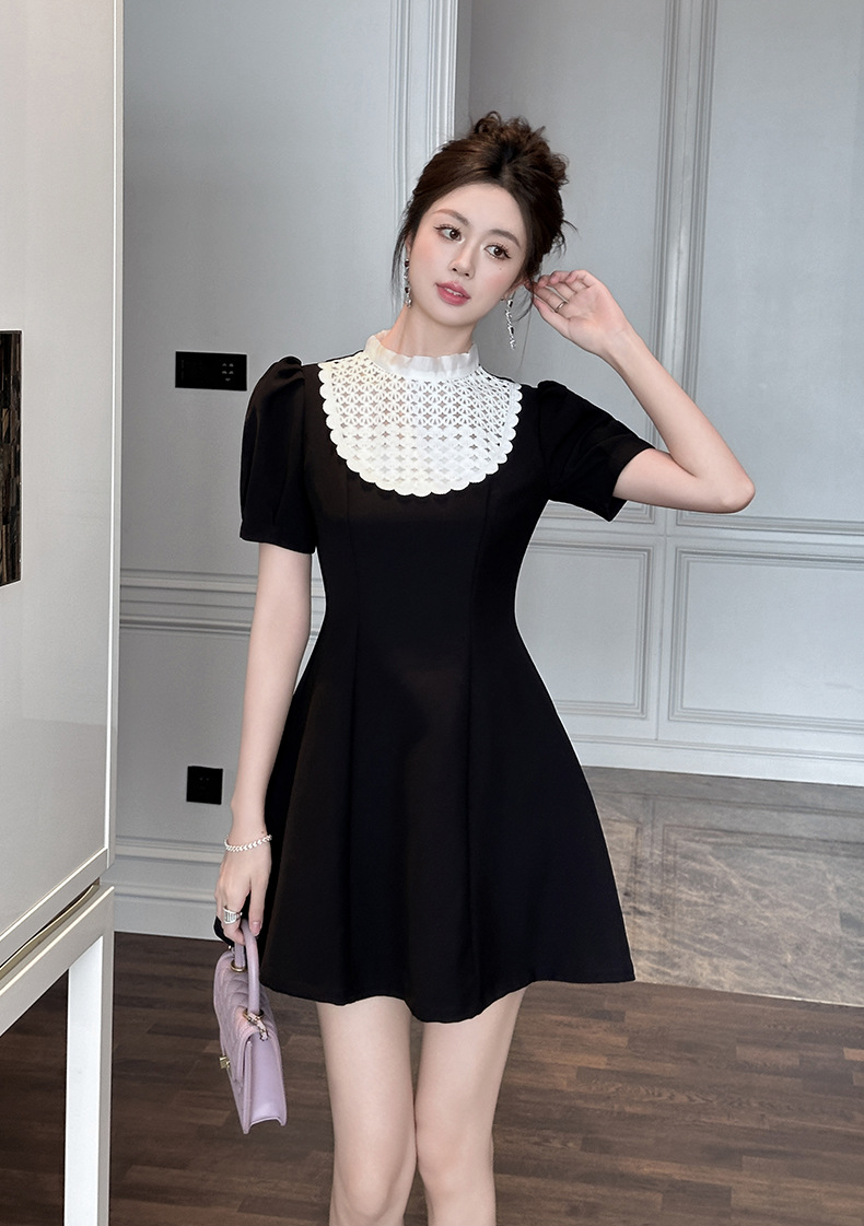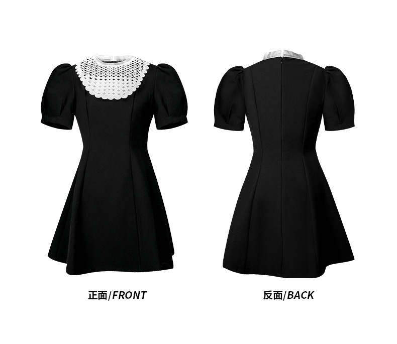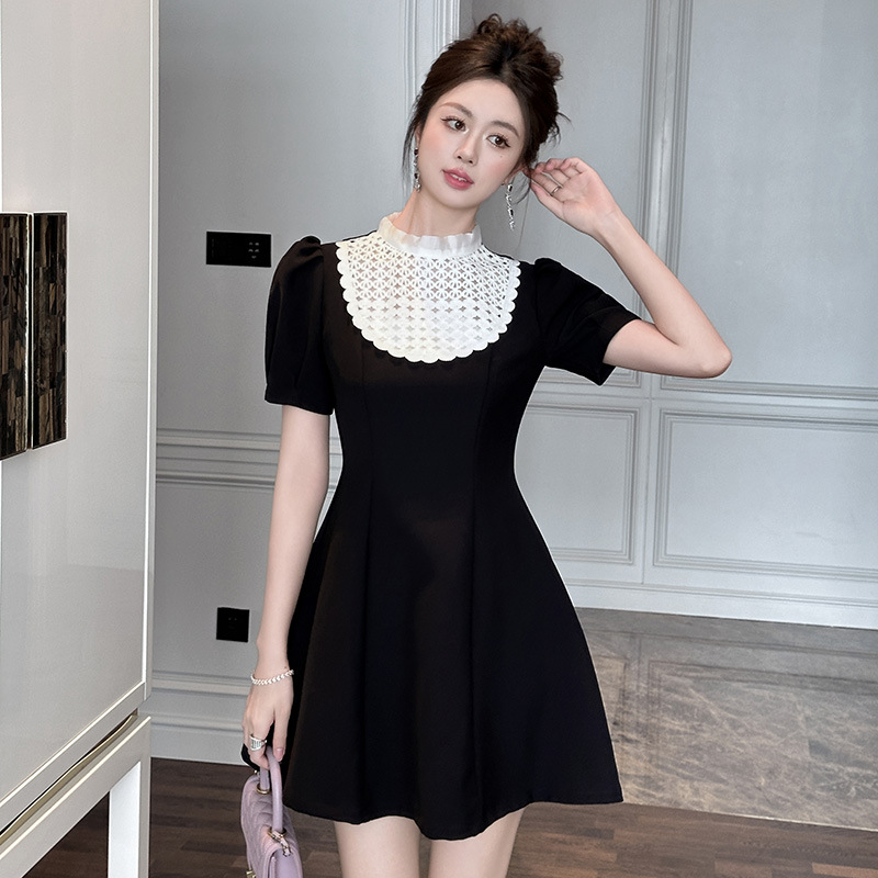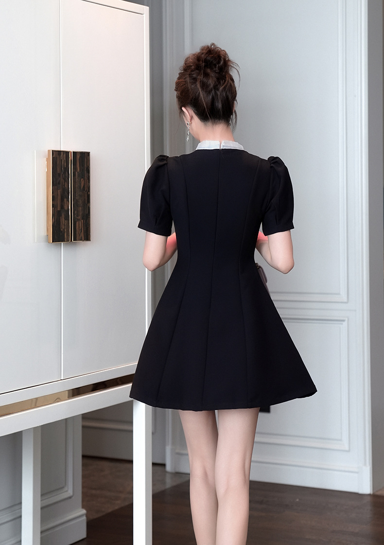 C-4019# 法式圆领赫本风连衣裙女气质千金短袖小黑裙生日礼服裙子9038