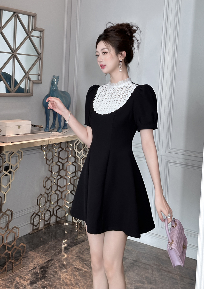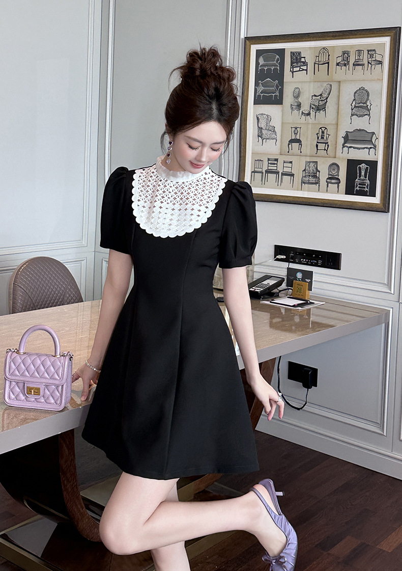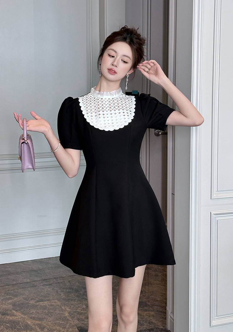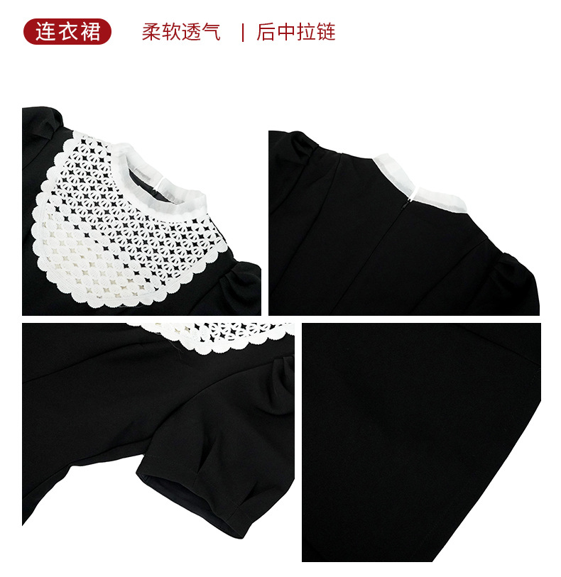 C-4019# 法式圆领赫本风连衣裙女气质千金短袖小黑裙生日礼服裙子9038