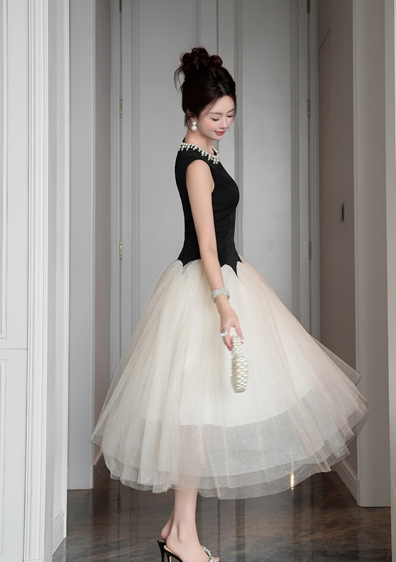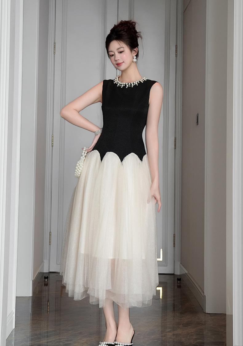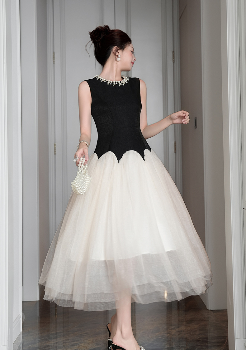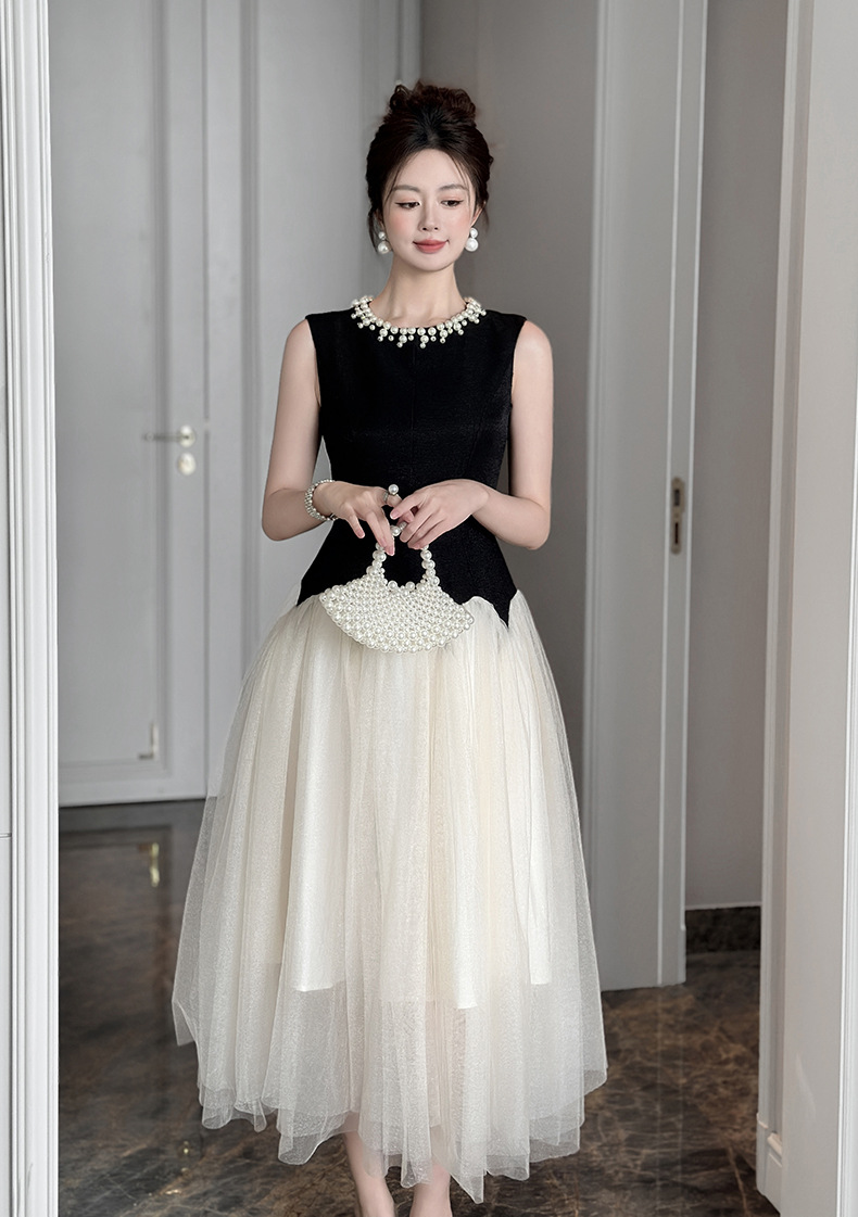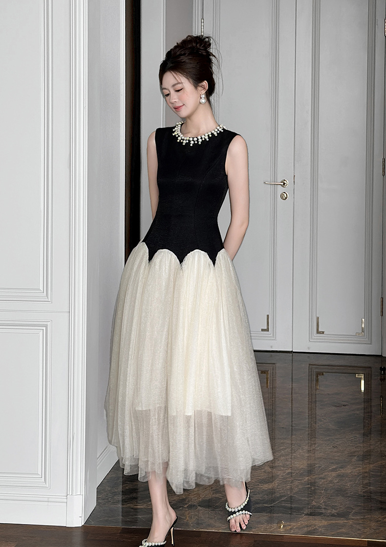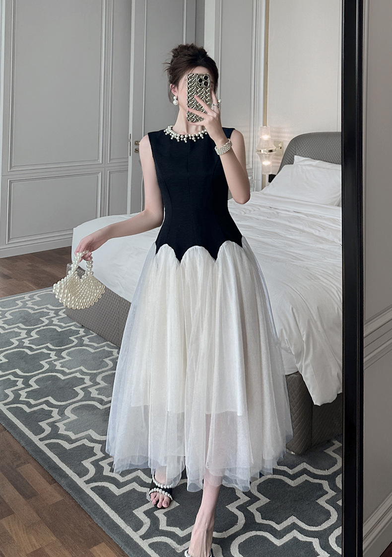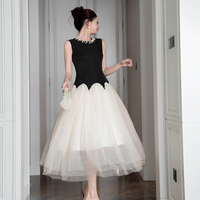 C-4023# 法式赫本风黑色背心连衣裙女夏季设计感气质收腰a字无袖长裙9010