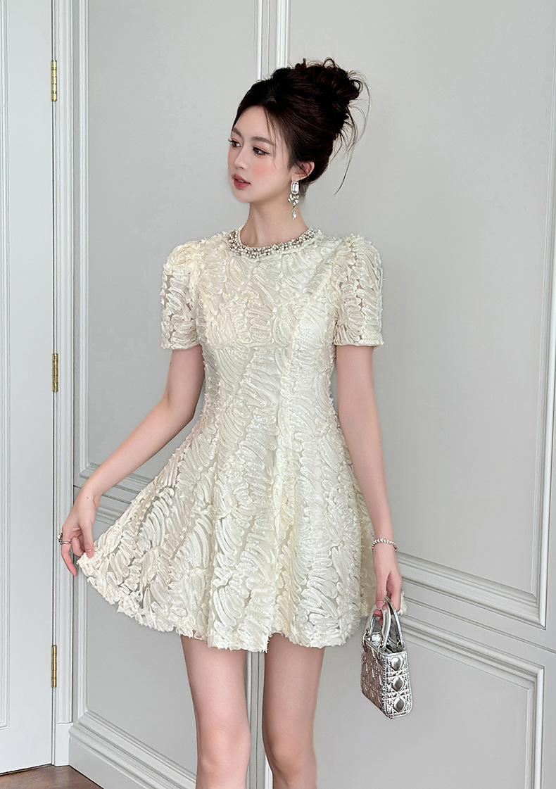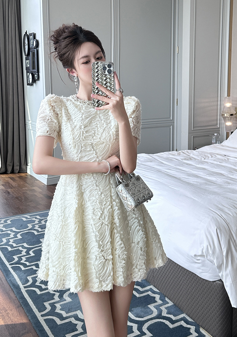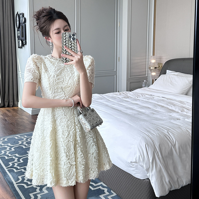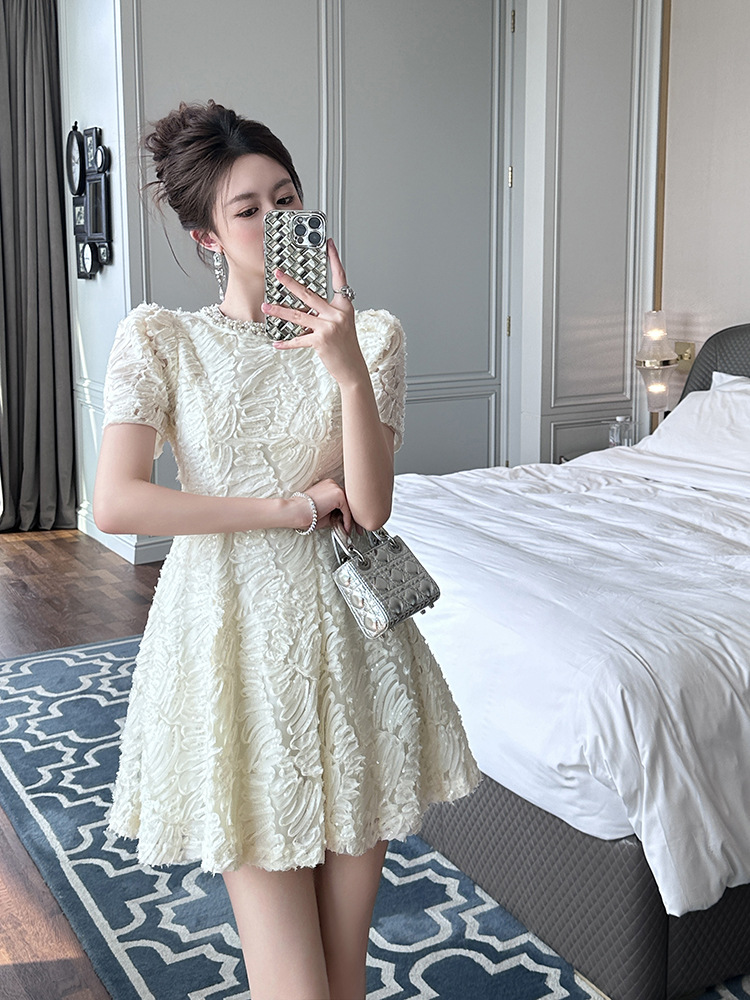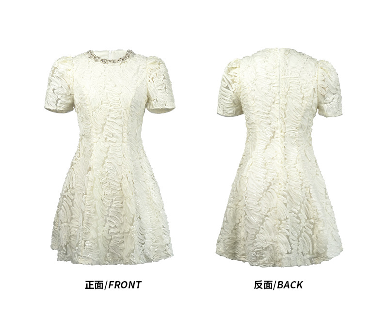 C-4028# 夏季新款女装温柔风气质圆领收腰立体花边显瘦小个子连衣裙21681