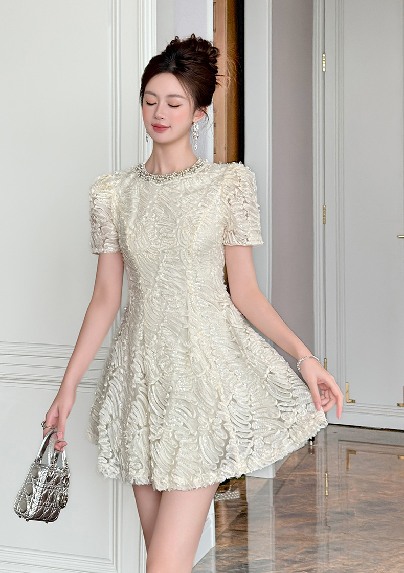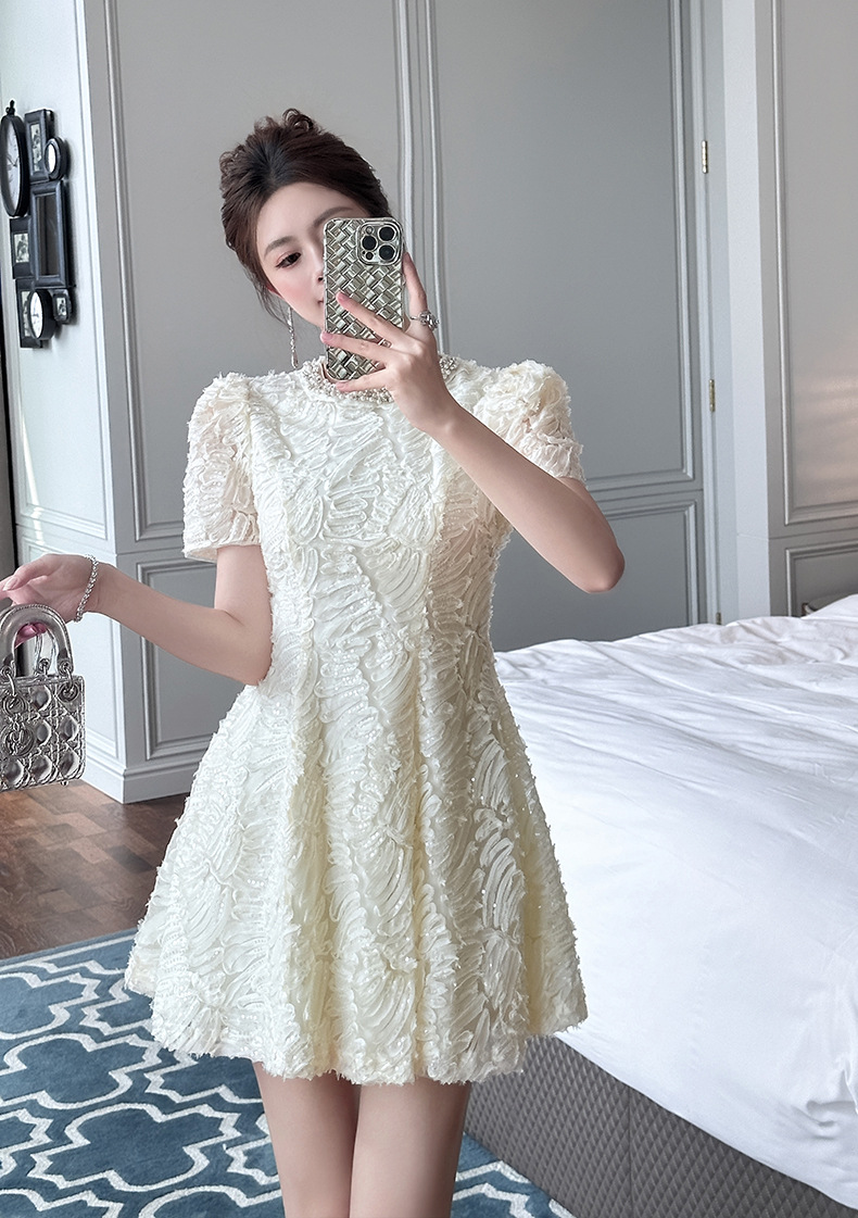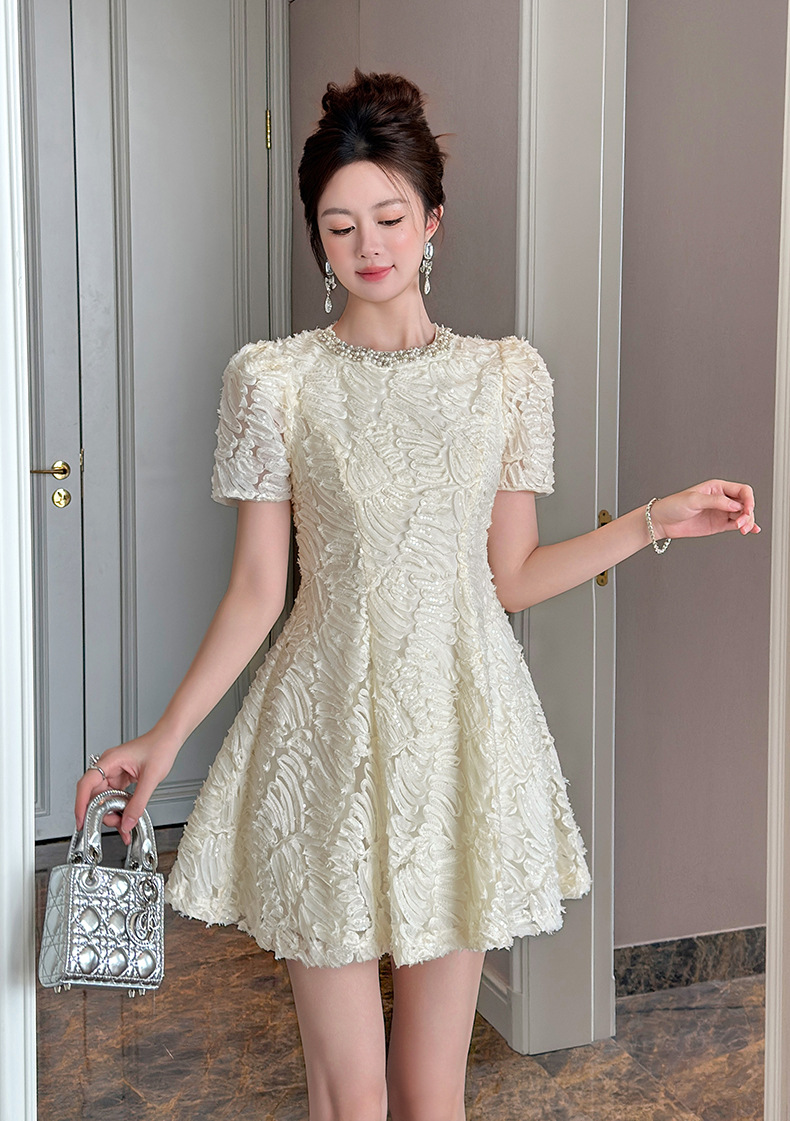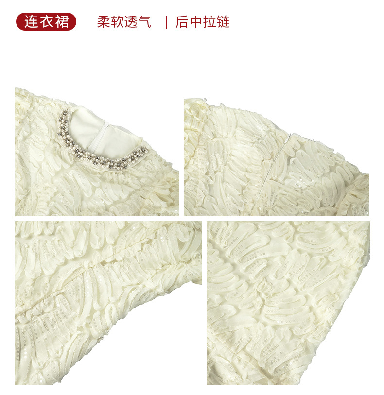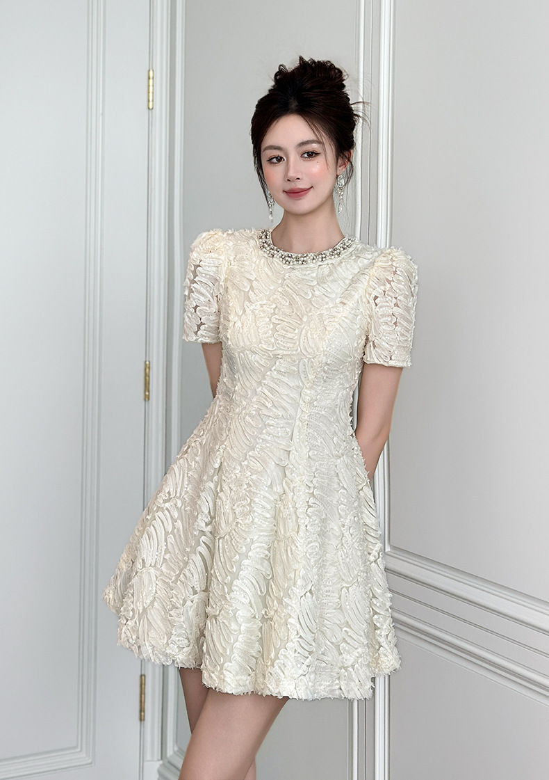 C-4028# 夏季新款女装温柔风气质圆领收腰立体花边显瘦小个子连衣裙21681