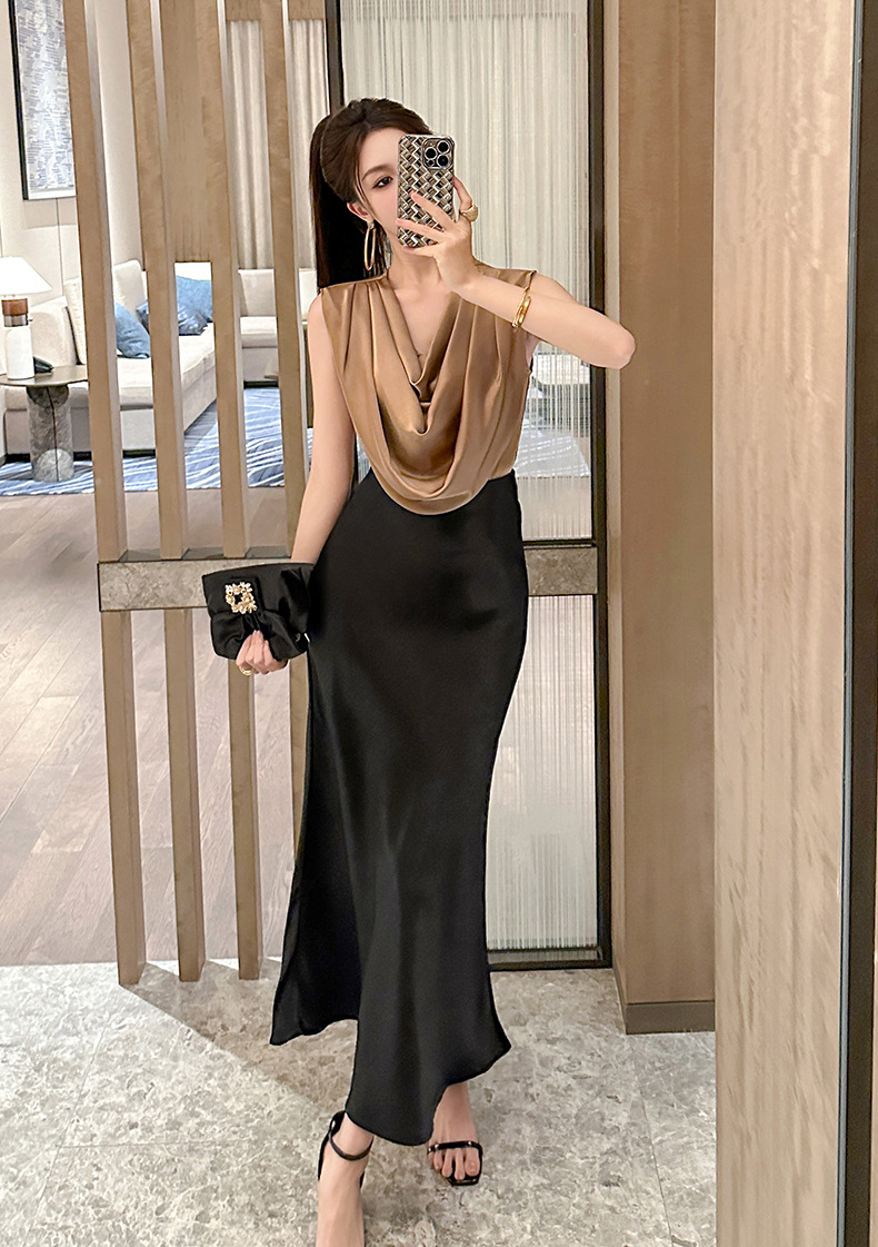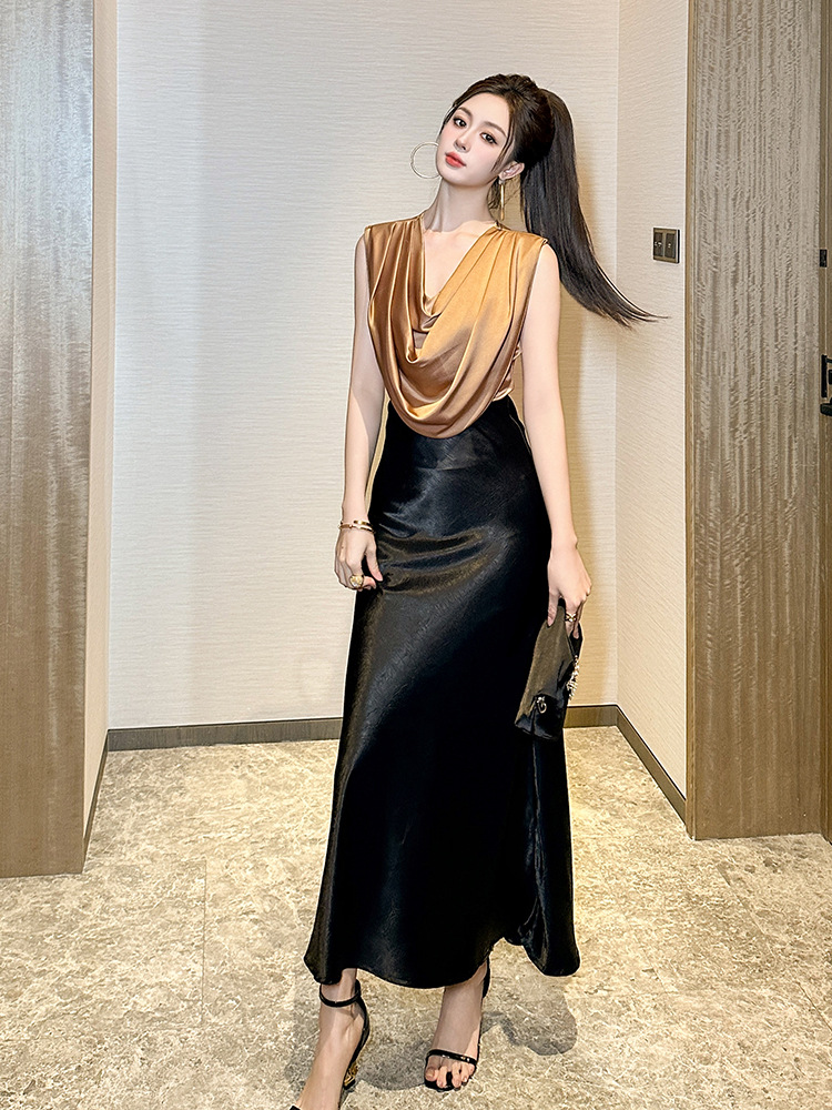 C-4343# 2025夏季新款女装韩版气质高腰修身A字半身裙包臀后妈长裙35174