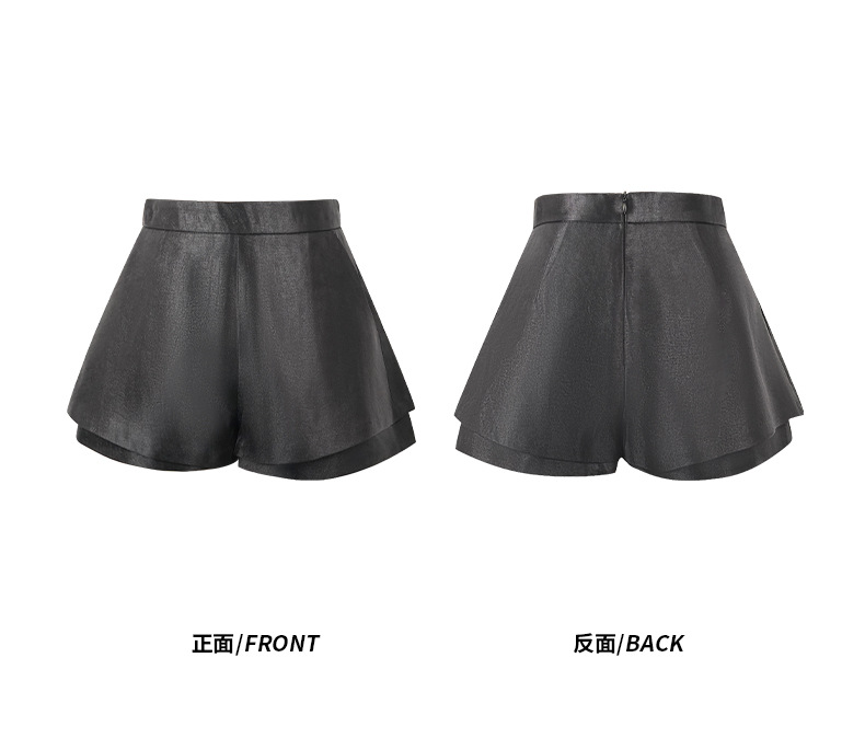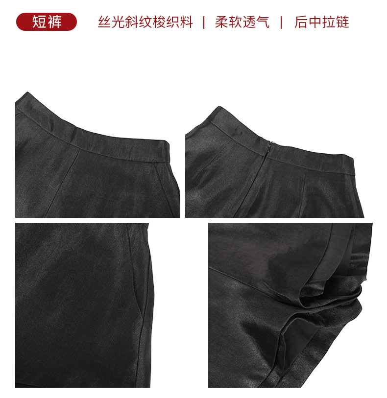 C-4384# 2025夏季新款女装法式设计感显瘦阔腿短裤高腰显高黑色裤子11651
