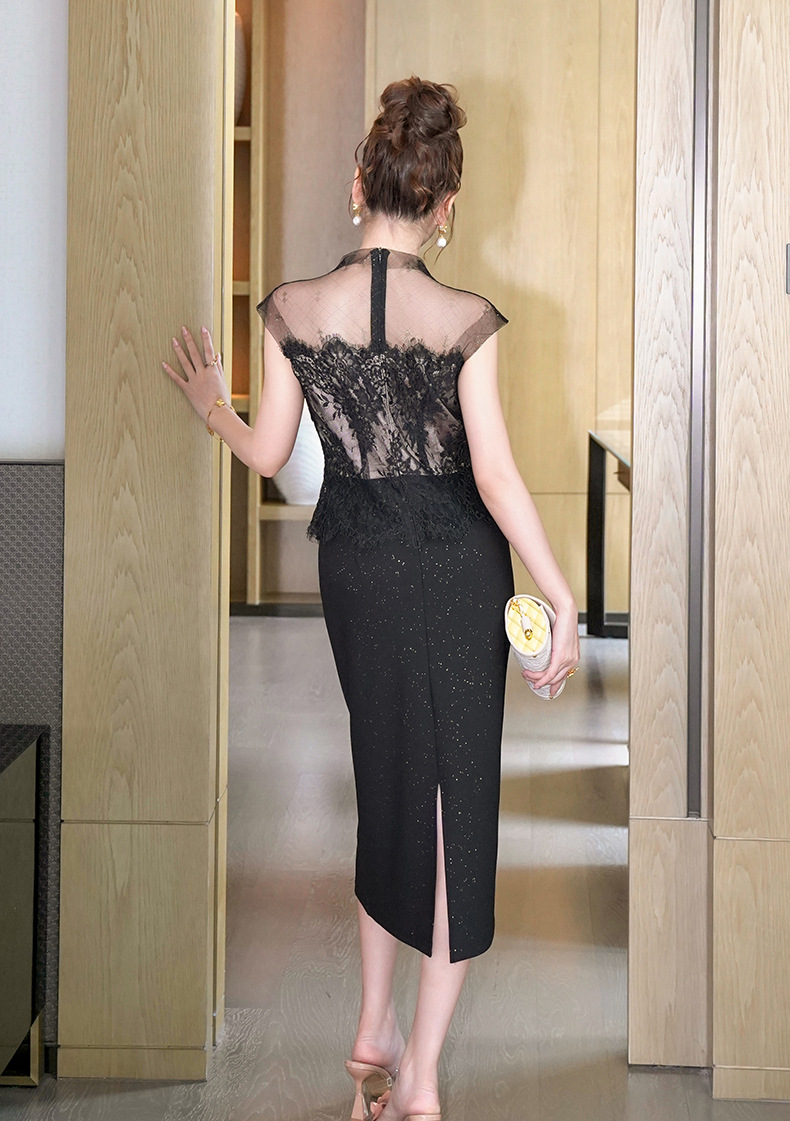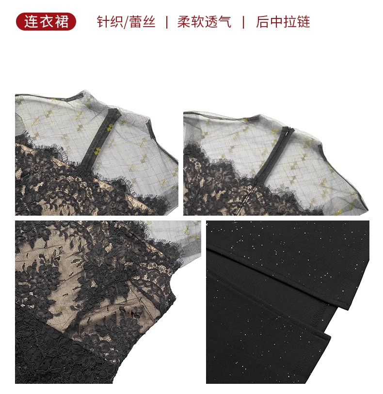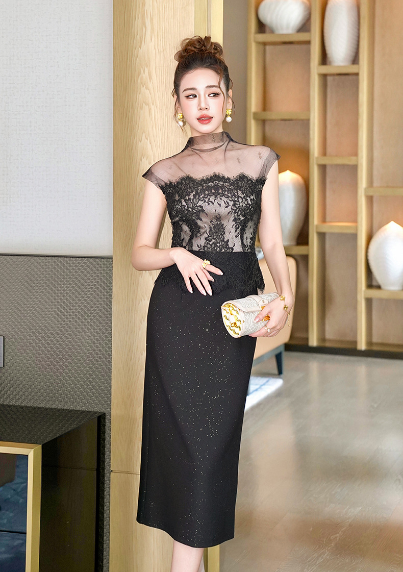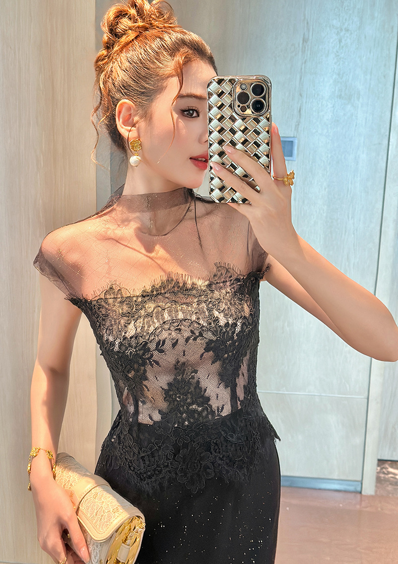 C-4404# 2025夏季新款纯欲风性感女人味透视网纱拼接修身包臀连衣裙21828