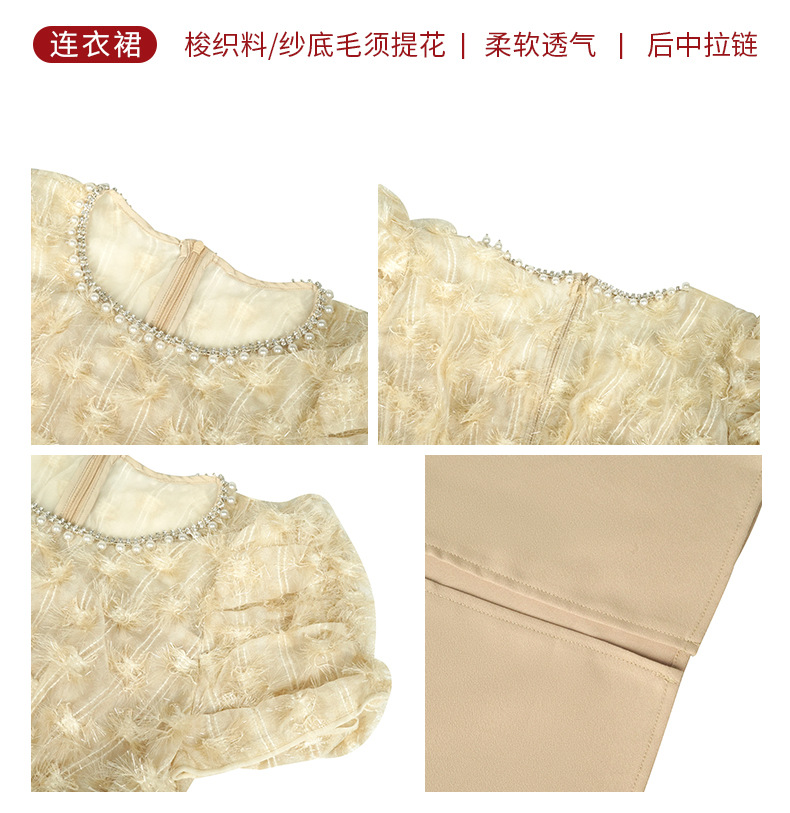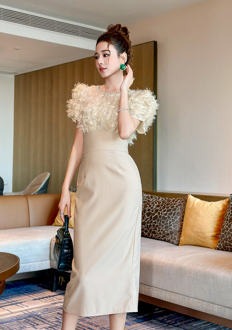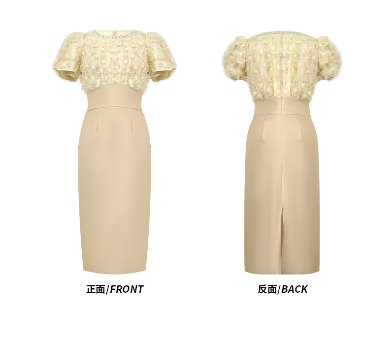 C-4412# 2025夏季新款女装法式圆领泡泡袖收腰包臀连衣裙聚会礼服裙41019