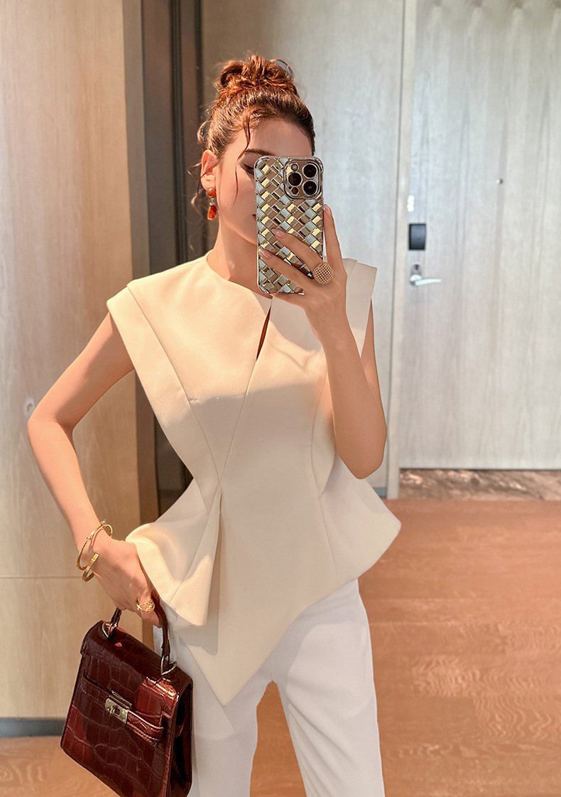 C-4414# 2025夏季新款女装御姐风气质职业设计感不规则上衣修身衬衫35190