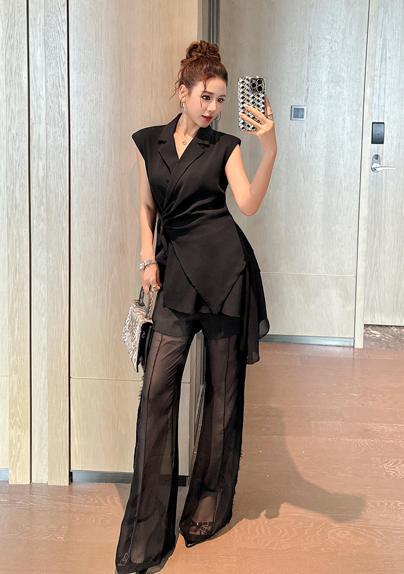 C-4417# 2025夏季新款女法式设计感不规则西装马甲外套修身西服上衣35216