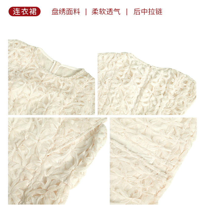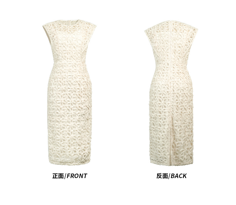 C-4481# 2025夏季新款装优雅气质圆领设计感花瓣修身过膝长款连衣裙11565