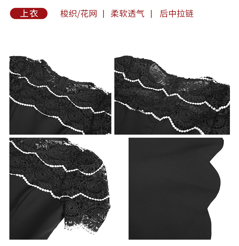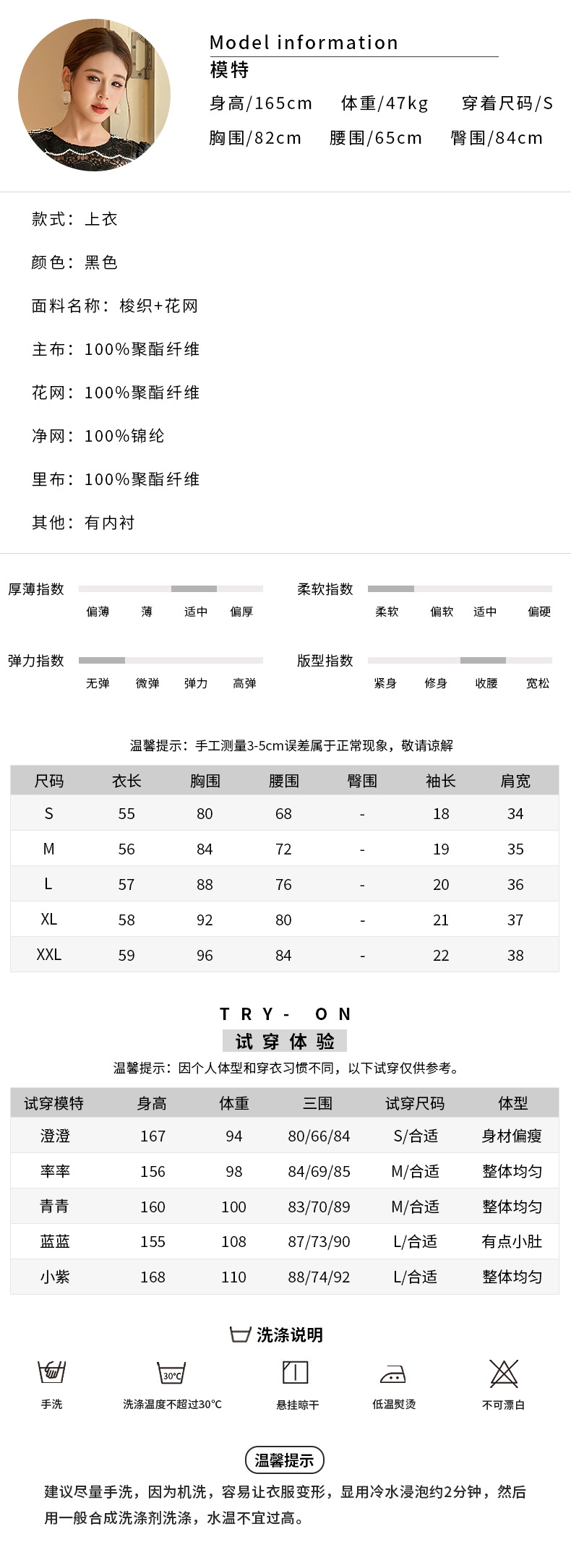 C-4493# 2025早秋新款御姐风气质圆领蕾丝拼接收腰荷叶边黑色上衣女82055