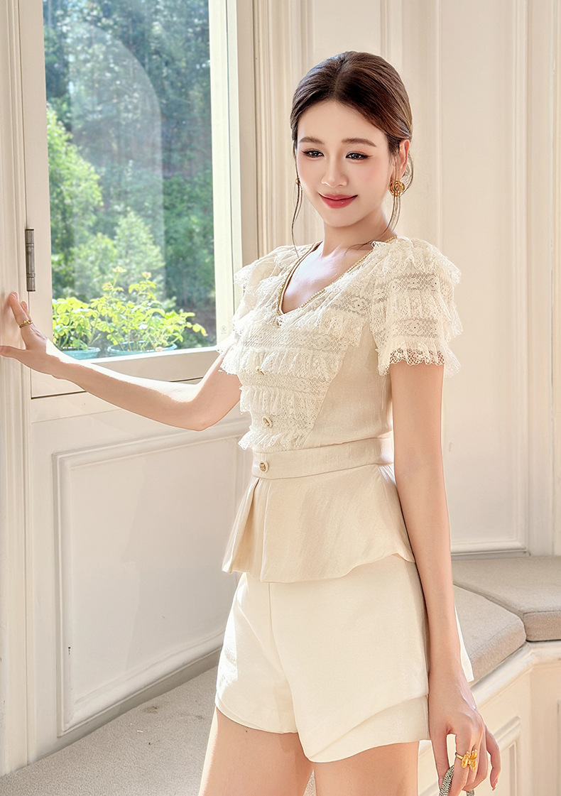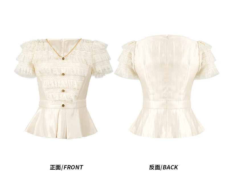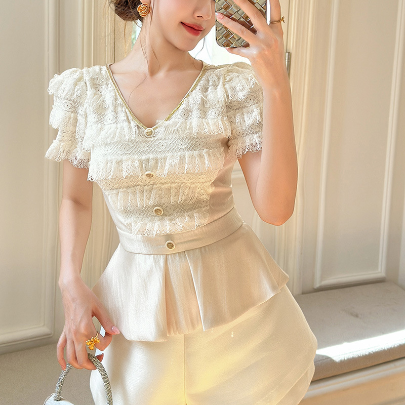 C-4505# 2025夏季新款女装法式V领收腰显瘦上衣名媛气质修身遮肚小衫82053