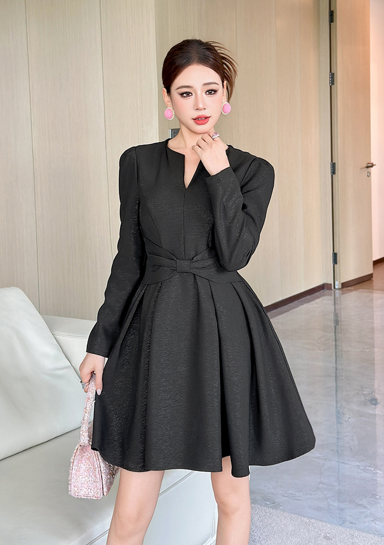 C-4534# 富家千金裙子2025秋冬装新款女装法式V领收腰a字蓬蓬连衣裙9135